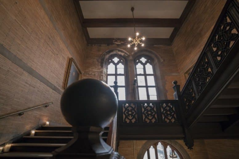 А вот еще один пример, совсем свежий. Это парадная лестница ресторана High Light в Нью-Йорке, снятая с рук 24 октября 2017 г. на максимуме разрешенного ISO (этот запрет выставляется в меню).