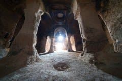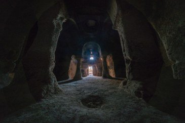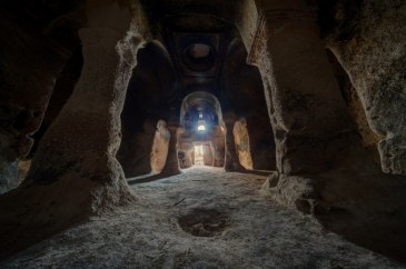Теперь о том, какие возможности предлагает нам сенсор Sony α7R II при обработке фотографий. Я имею в виду возможность корректировать экспозицию, ослаблять света и выявлять детали в тенях. Снимок ниже сделан со штатива в древней пещерной церкви подземного города Ачик-Сарай (Гюзельюрт, Каппадокия, Центральная Анатолия) объективом Voigtländer Hyper Wide Heliar 10mm F5.6 VE при f/11; 1/5 с; ISO 100. Умышленно допущена недодержка −2 EV, чтобы не потерять детали в ярких светах. В ходе постобработки в Adobe Camera RAW использован профиль объектива и введена коррекция экспозиции, ослабление светов и просветление теней.