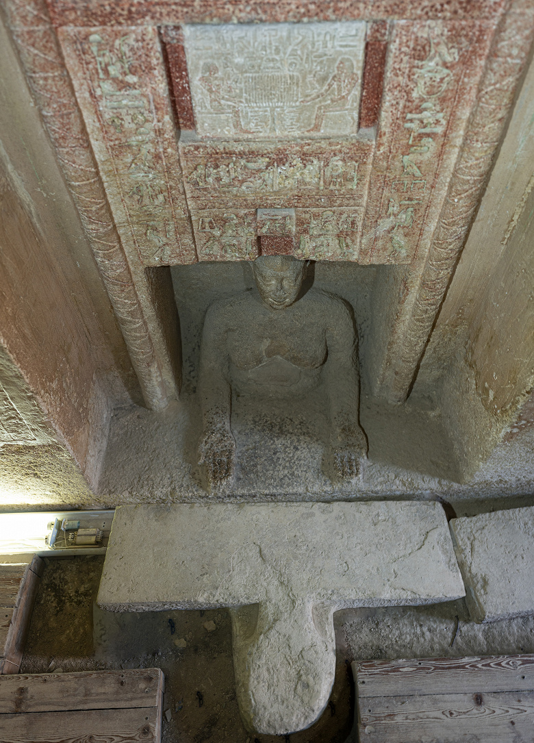 В усыпальнице Кар пространства больше, но сверхширокоугольная оптика все равно остается незаменимой. Без значительного угла обзора невозможно поместить в кадр все желаемые детали изображения, например статую усопшего (слева в нише), и одновременно сохранить симметричную композицию кадра — тот вид, которого добивались строители гробницы.