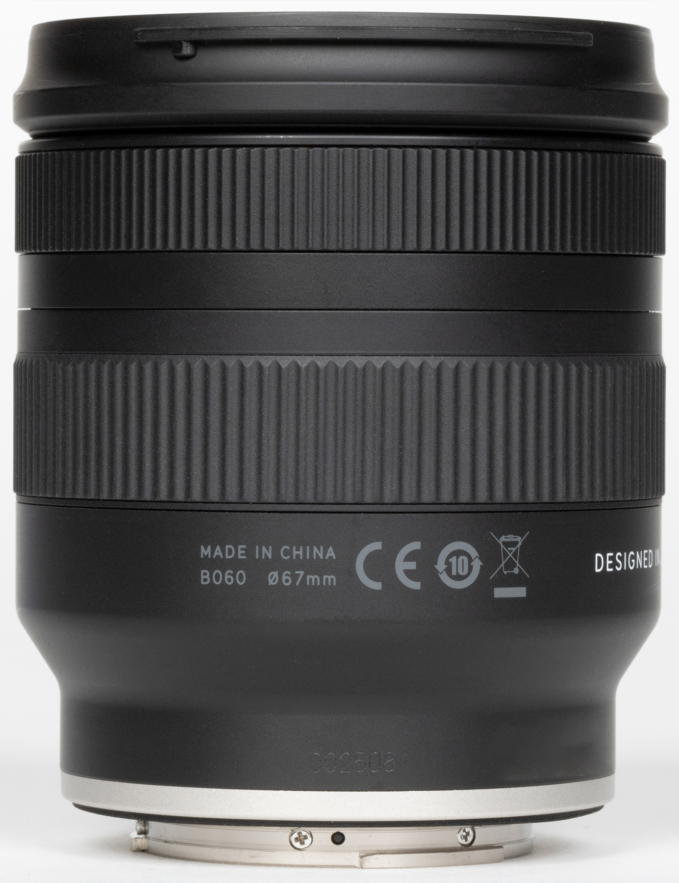 Левее нанесена менее заметная маркировка страны изготовления. В случае с Tamron 11-20mm F2.8 Di III-A RXD это Китай, что по нынешним временам весьма неплохо.