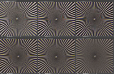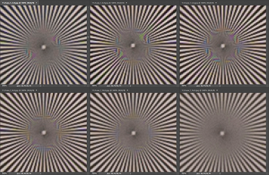 На графиках заметно сильное падение разрешающей способности на периферии кадра при воспроизведении меридиональных структур по 30 пар линий/мм. Это отражается на снимках, которые мы приведем ниже.