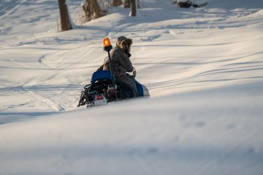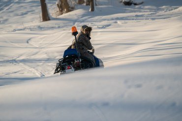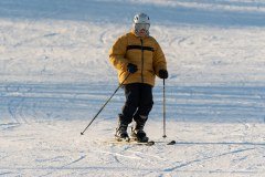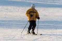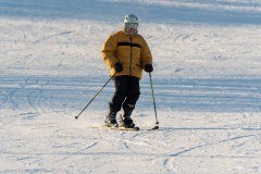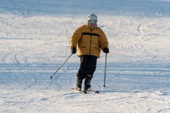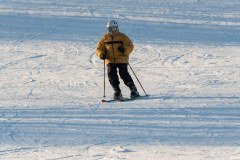 В динамичных сюжетах активация непрерывной автофокусировки (AF-C) позволяет объективу работать практически без брака. Серия из 9 кадров, представленных ниже, представляет собой сочетание трех последовательностей фиксации горнолыжного спуска. Вначале мы нажимали кнопку спуска затвора до половины, а затем трижды нажимали ее до конца. Одновременно перекомпоновывали кадр и снимали фигуру лыжника с проводкой вправо и влево.