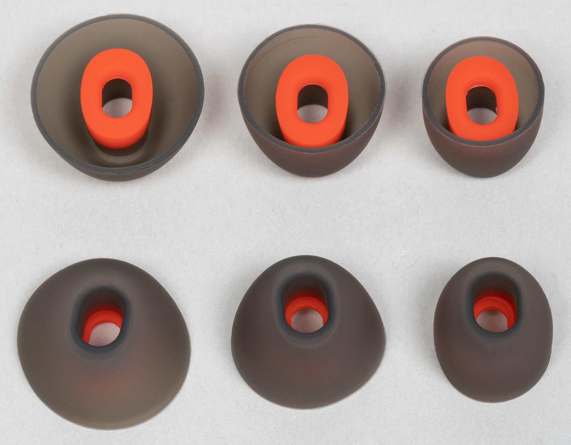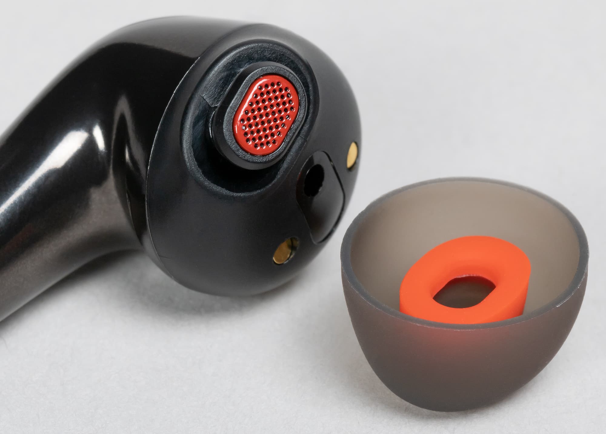 Силиконовые насадки с красным сердечником имеют овальную форму, подобрать им замену может быть немного сложновато — стандартные круглые не подойдут. Но в продаже амбушюры нужной формы имеются, так что большой проблемы в этом нет.