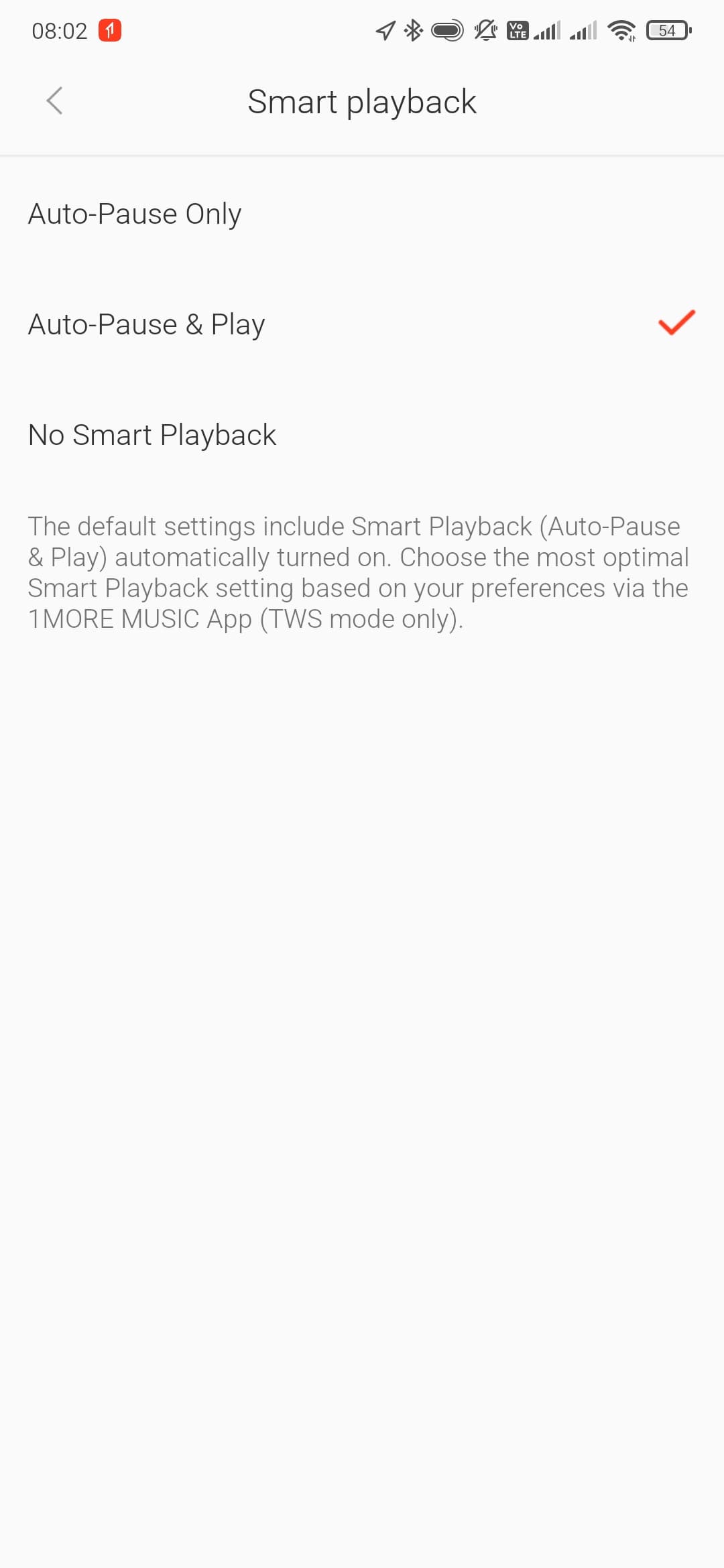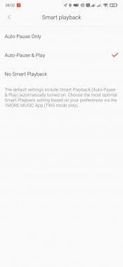 Всего доступно пять вариантов: отключение всего, сильный и средний уровень активности шумоподавления, «звуковая прозрачность» и специальный режим подавления шума ветра. В меню «Smart playback» можно включить настроить автопаузу с помощью датчиков ношения. Гарнитура может ставить трек на паузу, когда один из наушников вынут из уха, при этом продолжать или нет воспроизведение после того, как он вернулся на место — тоже решает пользователь, что удобно. Ну и можно вообще отключить эту функцию, если она не нужна. Работает, кстати, она вполне корректно и четко, проблем с ней за время тестирования не возникло ни разу.