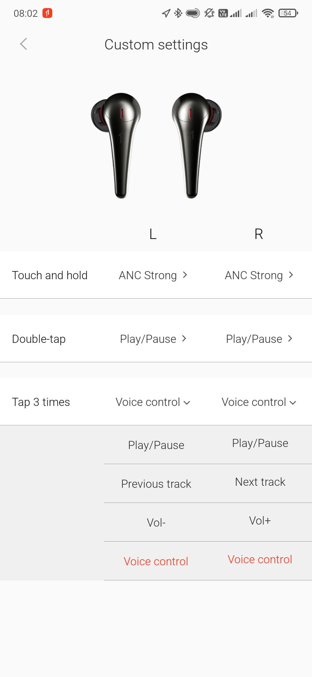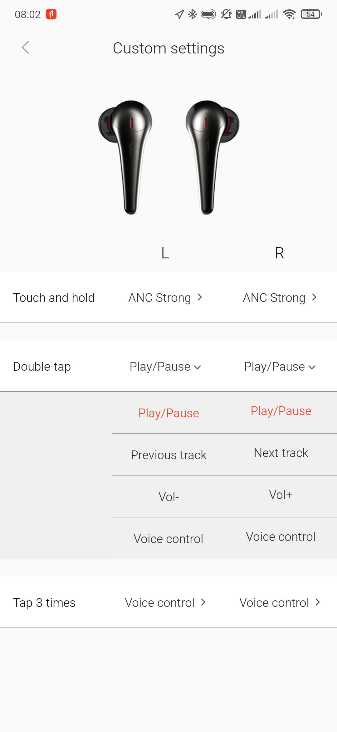 Как уже упоминалось выше, профиль управления есть возможность полностью настроить под себя. На длинное нажатие можно «повесить» любой из режимов работы, при этом правый и левый наушник могут активировать разные. Двойной и тройной тап могут отвечать за воспроизведение, перелистывание треков, изменение громкости или активацию голосового помощника.