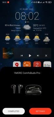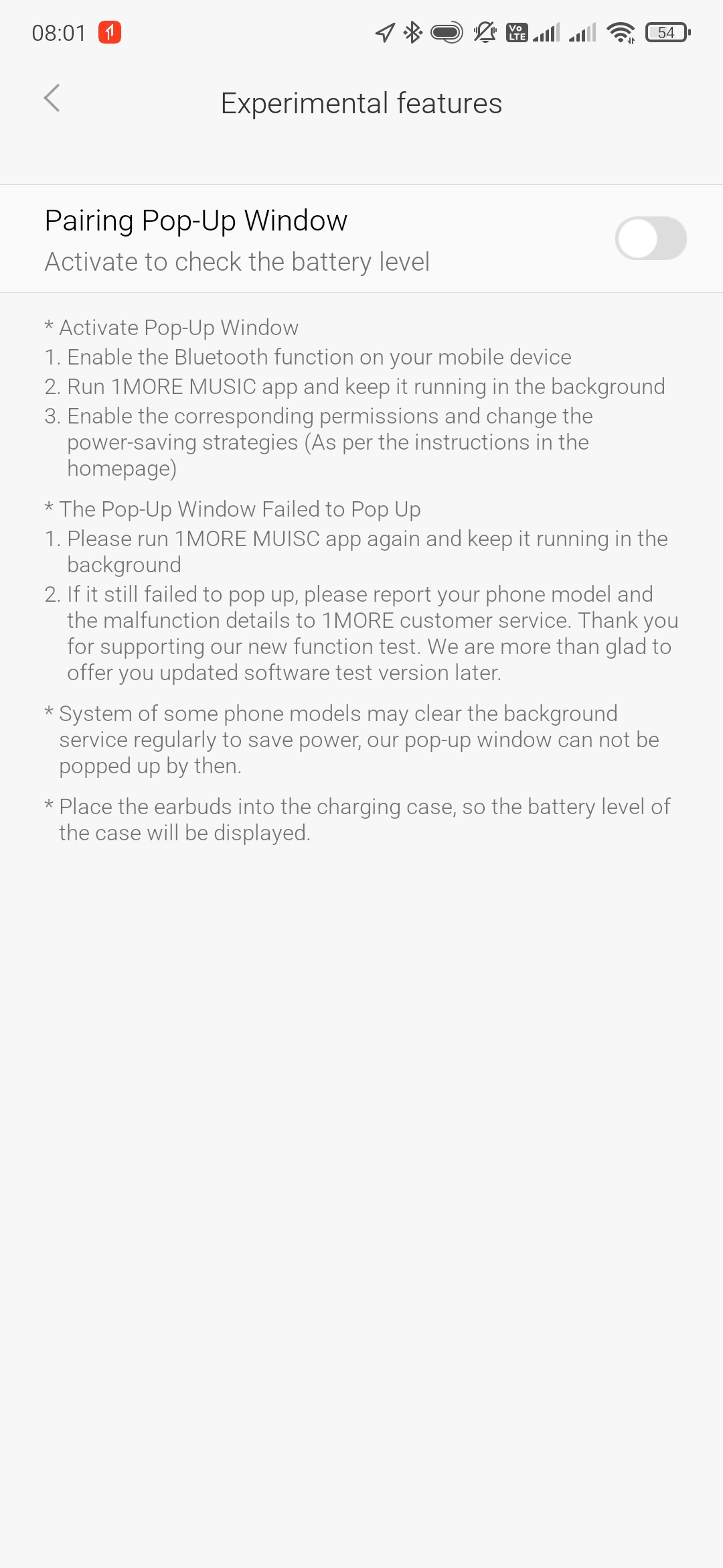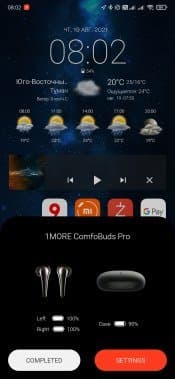 По сложившейся у 1More традиции присутствует и функция «прогрева» наушников с помощью специальных звуков. Необходимость этого процесса — вопрос спорный, но есть и есть. В качестве экспериментальной «фишки» предлагается возможность появления всплывающего окна на любом экране смартфона при подключении гарнитуры. Мы попробовали — все работает.