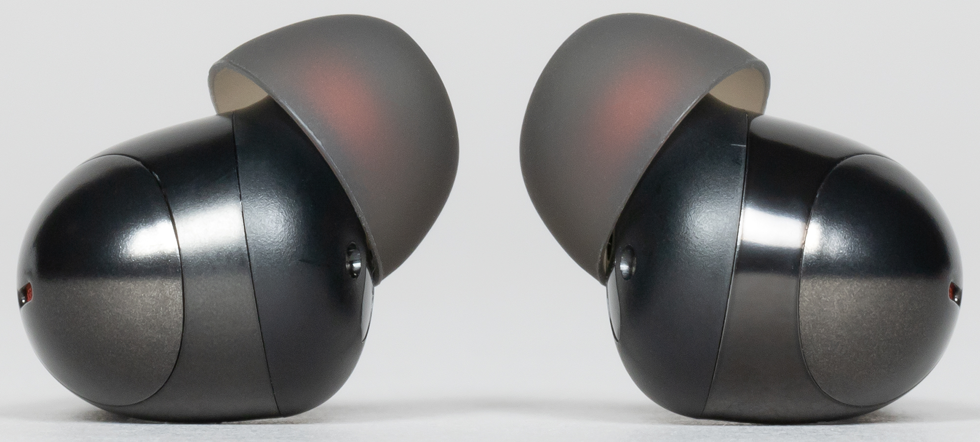 При взгляде сверху заметно, что носик звуковода имеет среднюю длину и не рассчитан на глубокое погружение в слуховой проход. Форма внутренней части корпуса округлая, выступов для лучшей опоры на чашу ушной раковины нет — к вопросам надежности и комфортности посадки мы еще вернемся.