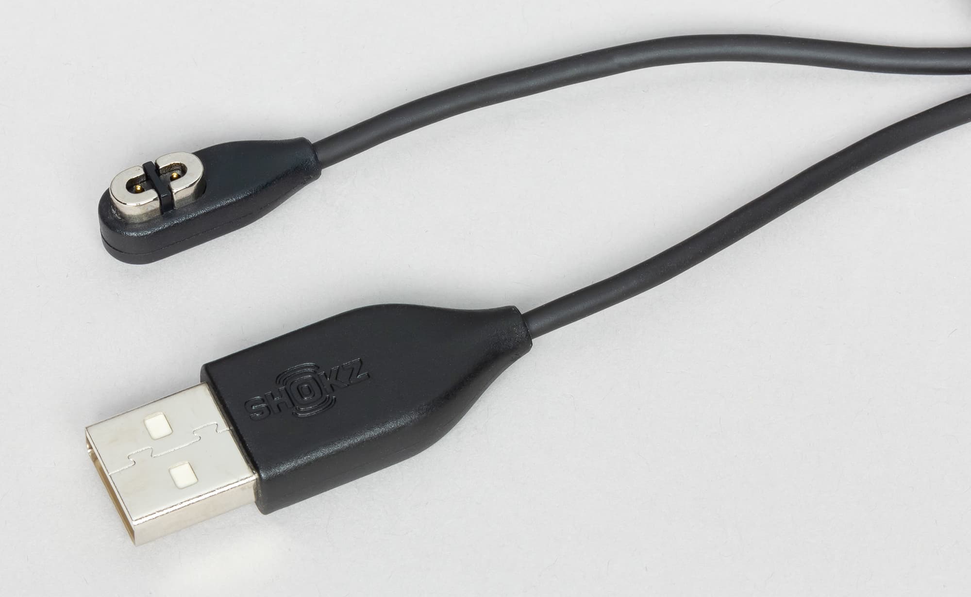 Разъем для зарядки у наушников проприетарный — его магнитное крепление помогает обеспечить водозащиту. Соответственно, утеря кабеля в данном случае крайне нежелательна, заменить его будет сложно. Потому в комплекте кабелей два, за что компании AfterShokz отдельный респект — такой подход сейчас встречается крайне редко. Зарядного устройства в комплекте нет, но это и к лучшему: они сегодня есть практически у каждого, переплачивать еще за одно — никакого смысла.