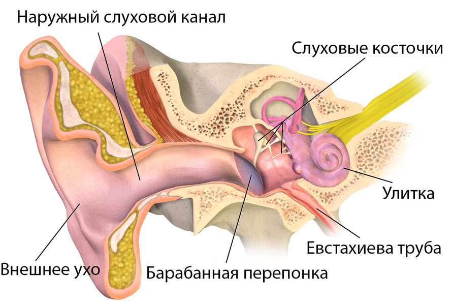 Для начала стоит сказать пару слов о самой технологии костной проводимости звука. Наверняка, большая часть наших читателей с ней уже знакома. Поэтому очень кратко — чтобы напомнить знающим и дать общее представление тем, кто пока не в курсе дела. Упрощенно восприятие звука человеком можно представить следующим образом: наружное ухо улавливает колебания, в среднем ухе при помощи слуховых косточек (молоточка, наковальни и стремечка) эти колебания преобразуются в механические. Далее во внутреннем ухе, а точнее в его отделе, который называется кортиевым органом, или улиткой, они преобразуются в электрические импульсы с помощью специальных рецепторов. Остается доставить эти импульсы по нервным волокнам в височные доли коры головного мозга, где расположены слуховые центры — и готово.