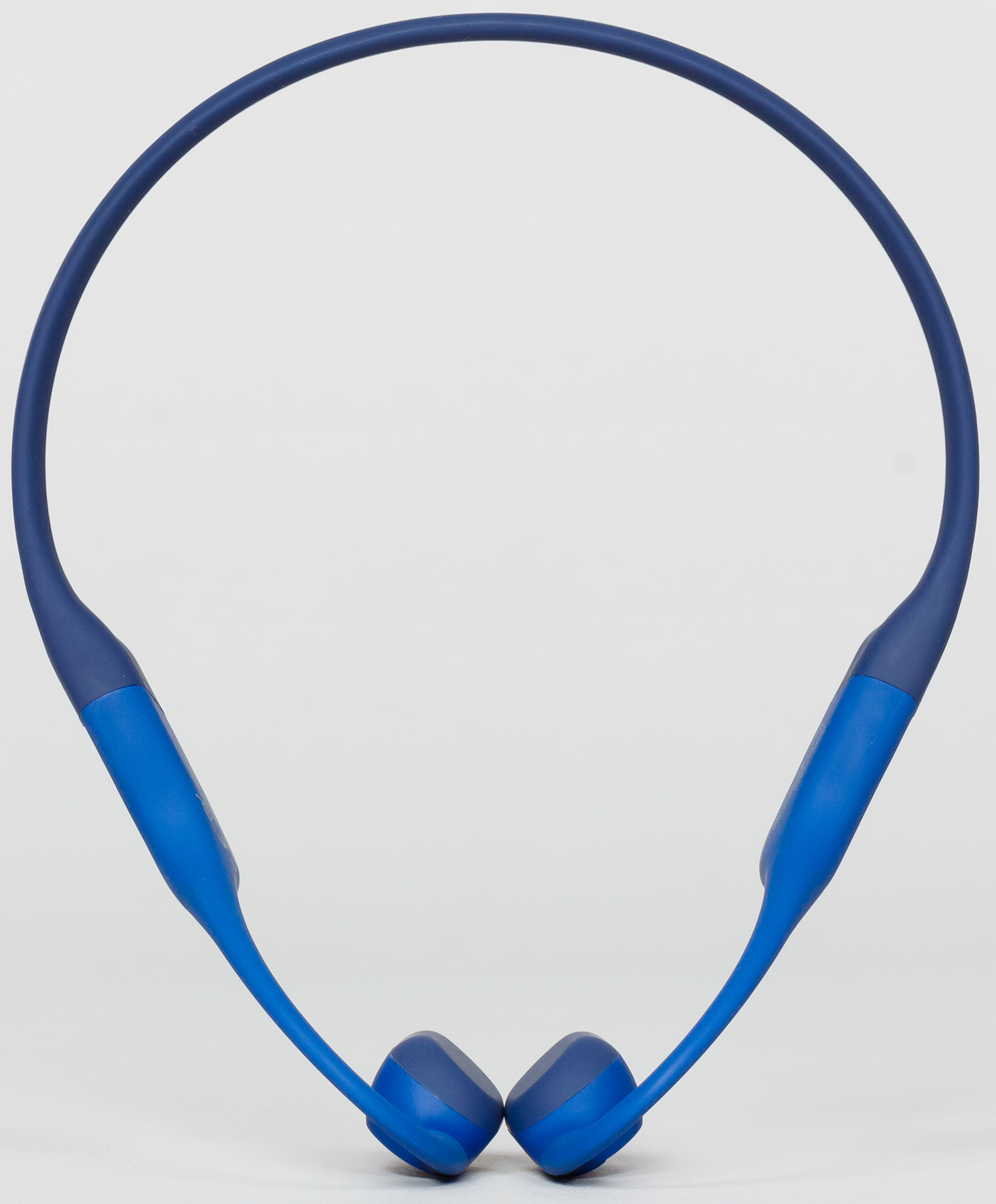 Новые Aeropex удалось сделать на 15% легче и на 30% меньше, чем их предшественников, и владельцы предыдущей модели Trekz Air наверняка это оценят. Все части корпуса — от обода до пьезоизлучателей и кнопок — прорезинены. В продаже есть четыре расцветки: черная, синяя, серая и красная. Нам на тестирование достался синий вариант.