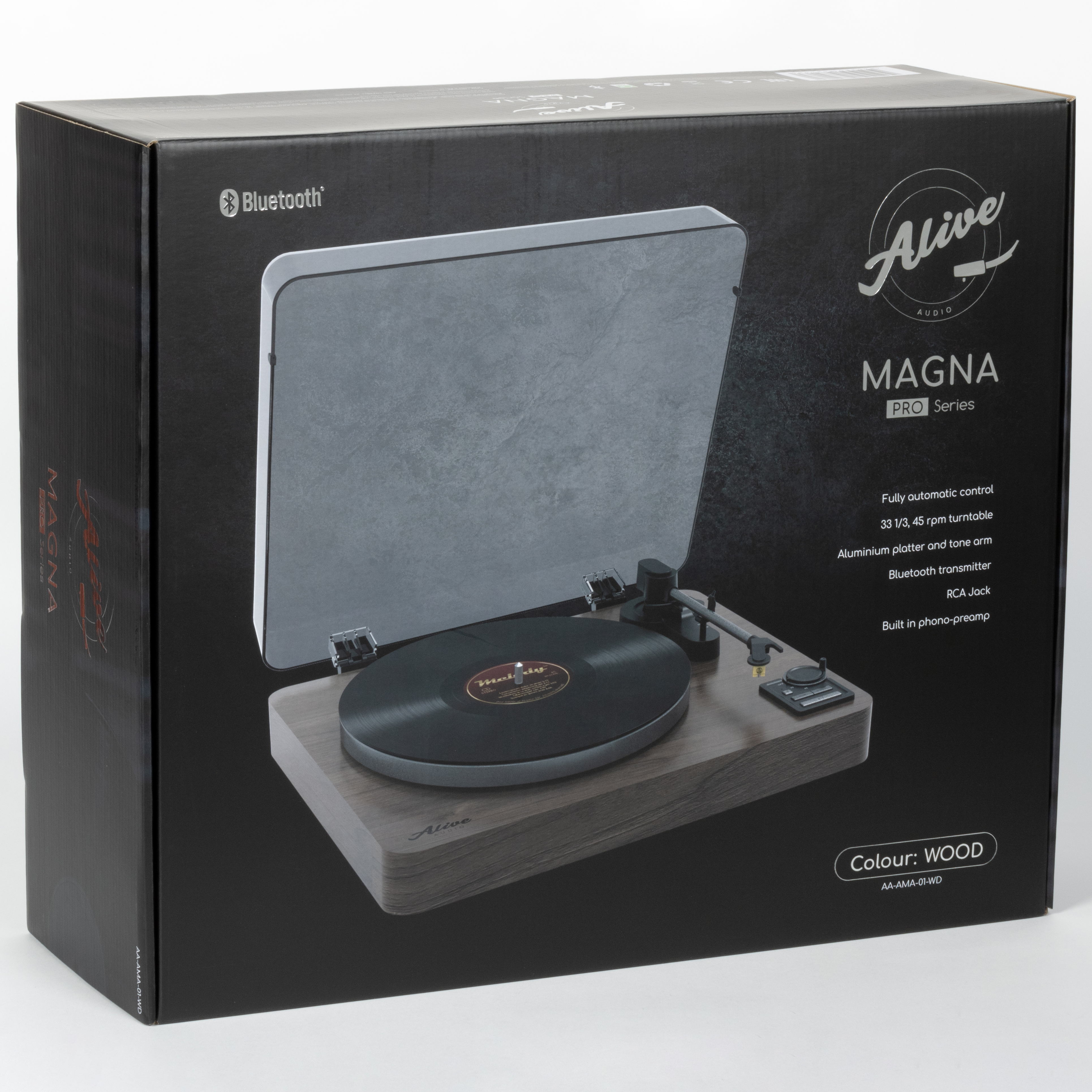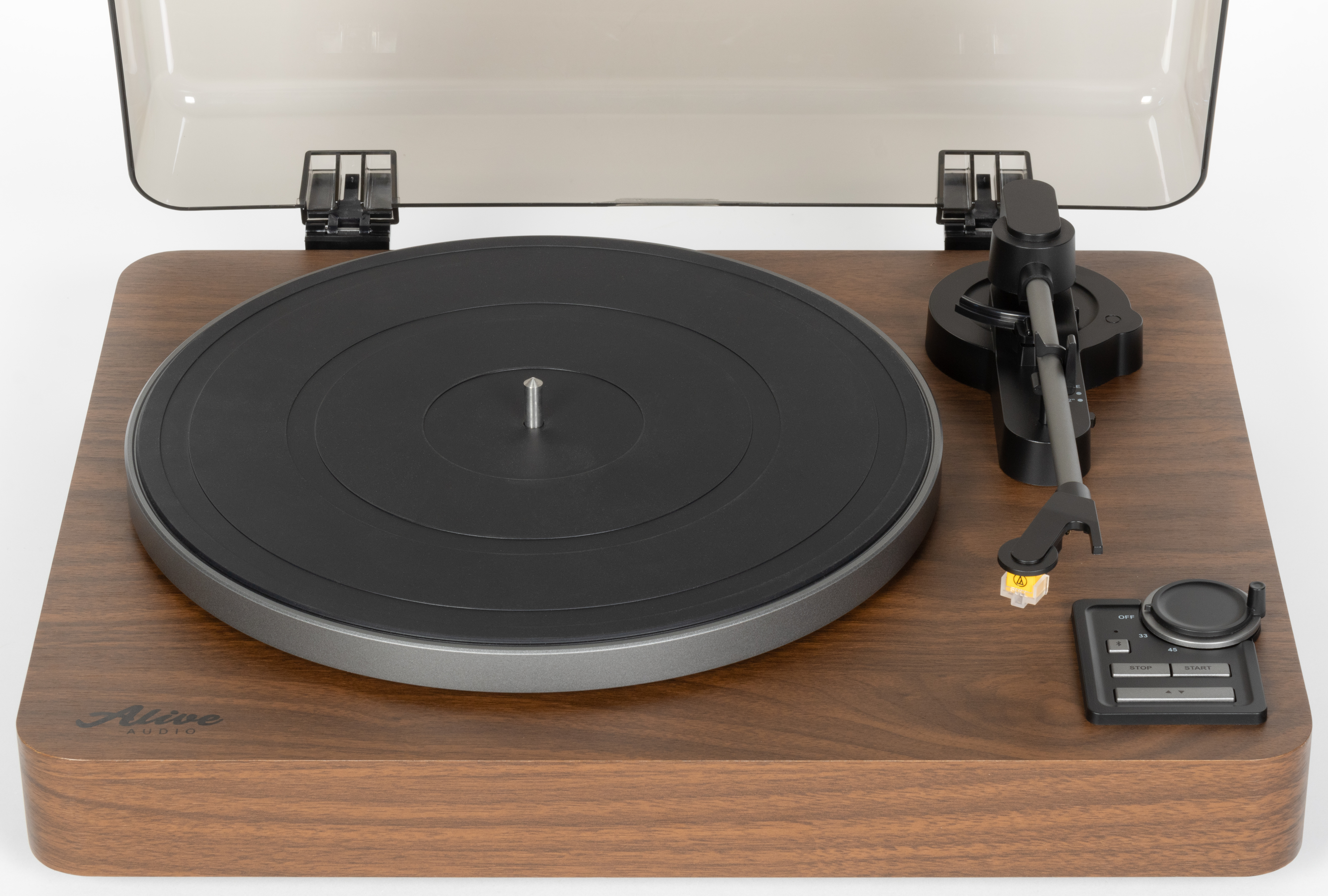Про прочие характеристики тоже не забыли. В качестве картриджа используется Audio-Technica AT91 — решение по-прежнему крайне бюджетное, но всё же на одну ступеньку повыше самого простенького AT3600L, который мы регулярно встречаем в проигрывателях начального уровня. На борту есть классические RCA-выходы, которые могут работать как в режиме Line, так и Phono. Это значит, что при желании Alive Audio Magna можно подключить не только к усилителю или активной акустике, но и к системе с внешним фонокорректором. Для тех, кто предпочитает беспроводное подключение, есть поддержка Bluetooth. В общем, кандидат на звание «идеальный проигрыватель для новичка» у нас тут серьезный — посмотрим, насколько хорошо он покажет себя в работе.