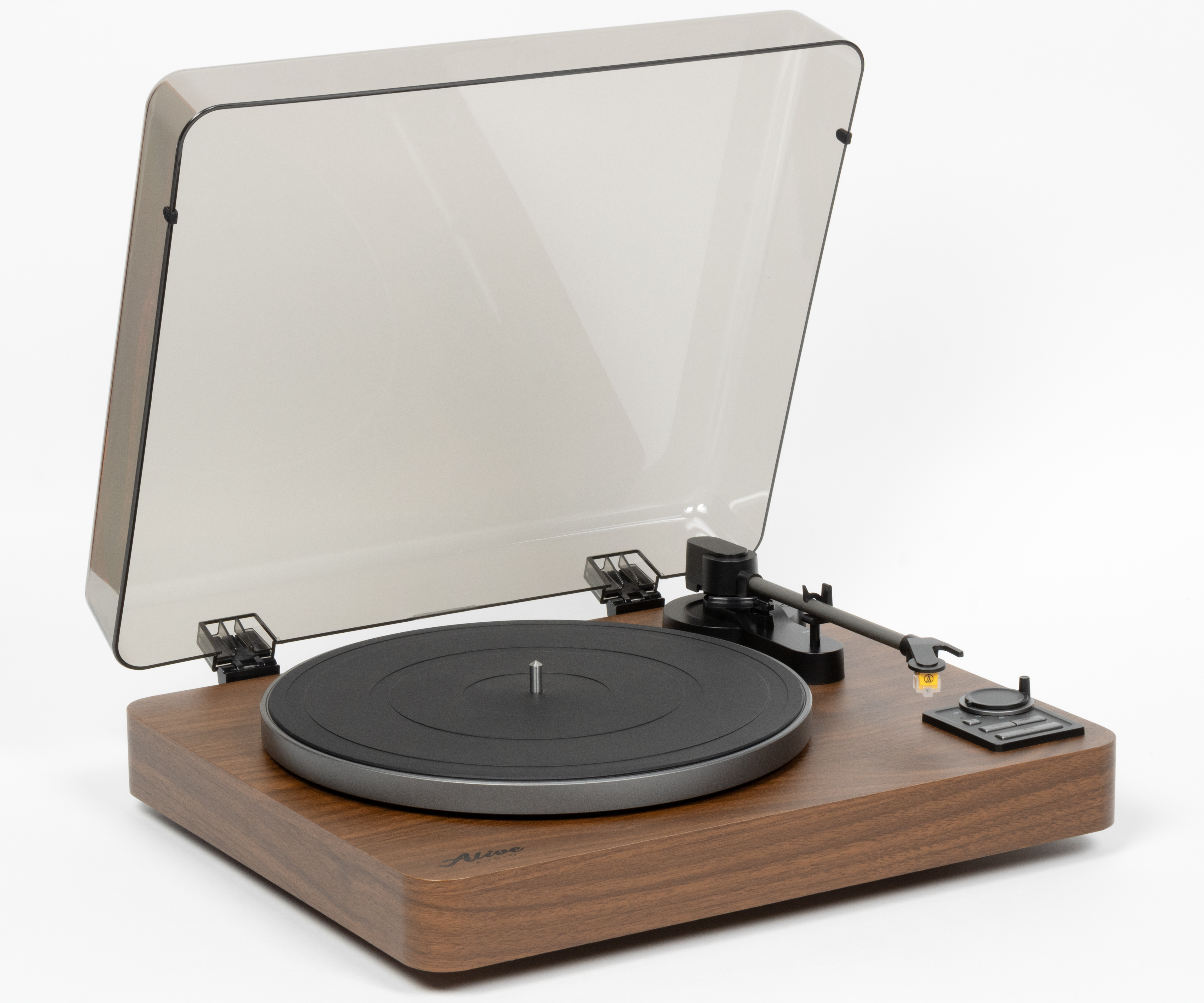Пылезащитная крышка с легким дымчатым оттенком делает оформление более цельным, но не мешает наблюдать за вращением винила и движением тонарма.