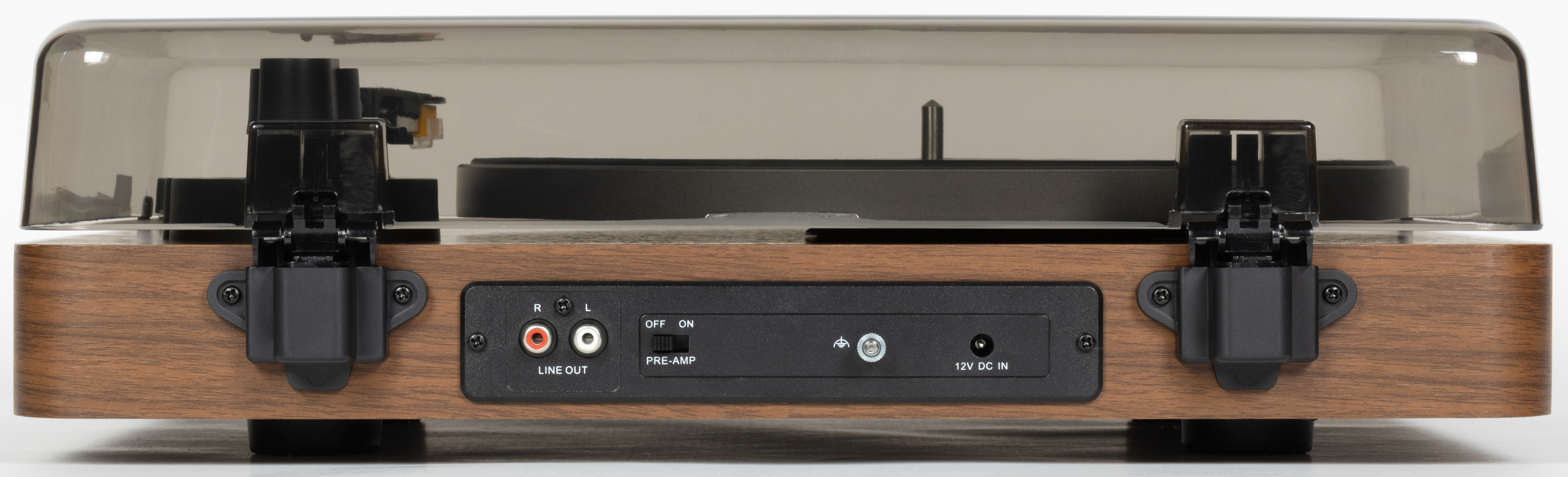 Далее нужно установить крепления для крышки и саму крышку — тут совсем ничего сложного, но если вдруг возникнут вопросы — можно обратиться к инструкции. Все разъемы для подключения вынесены на заднюю панель. RCA-выход работает в двух режимах — с включенным или отключенным встроенным предусилителем (line и phono соответственно).