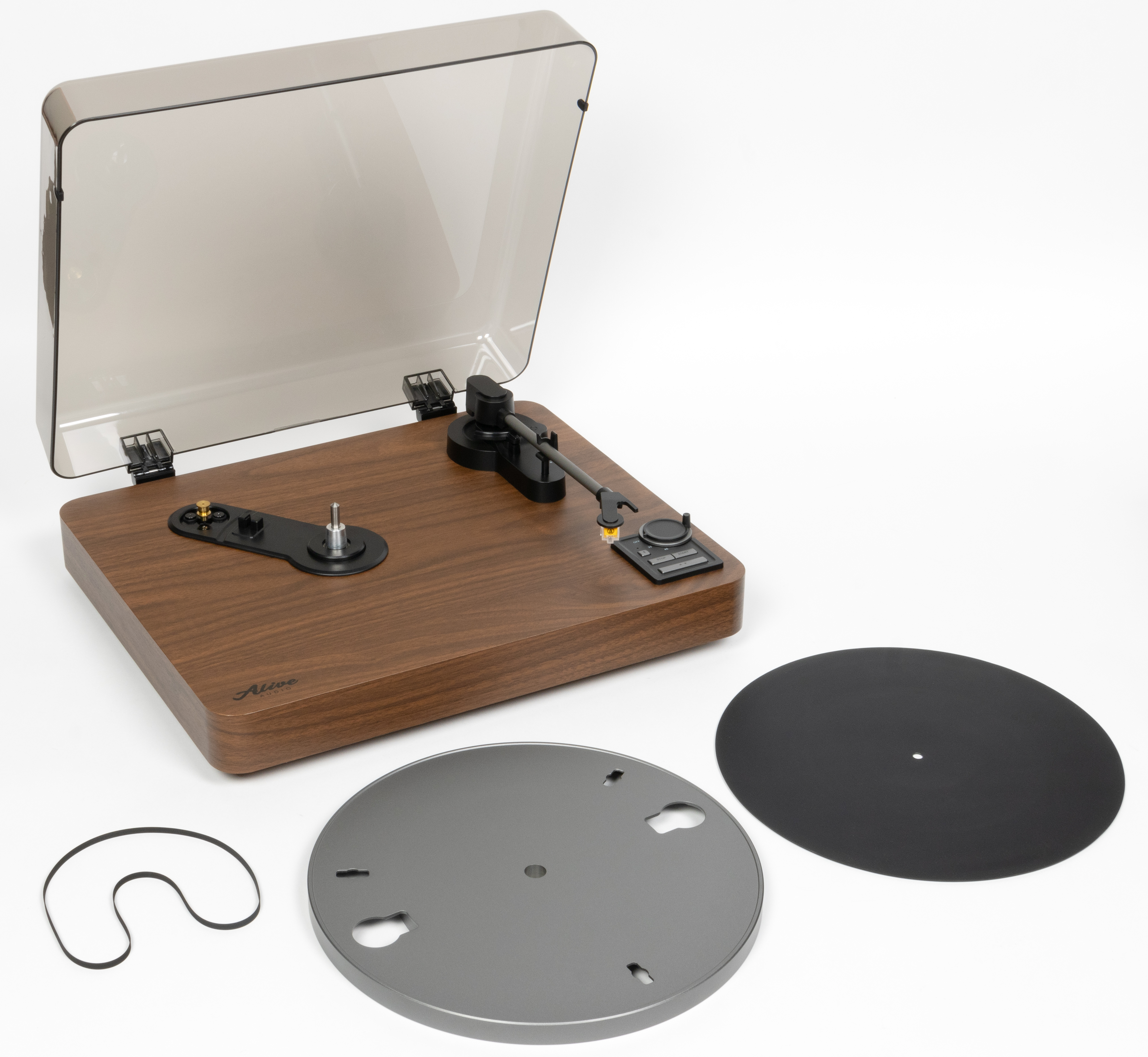 В последнее время многие проигрыватели комплектуются фетровыми слипматами — они легкие, мягкие и хорошо скользят. Последнее особенно важно диджеям, которым нужно вручную сдвигать пластинку, останавливать ее и так далее. А вот для спокойного домашнего прослушивания больше подходит резиновый слипмат — он тяжелее, не скользит и лучше гасит вибрации. Именно такой и входит в комплект с Alive Audio Magna.