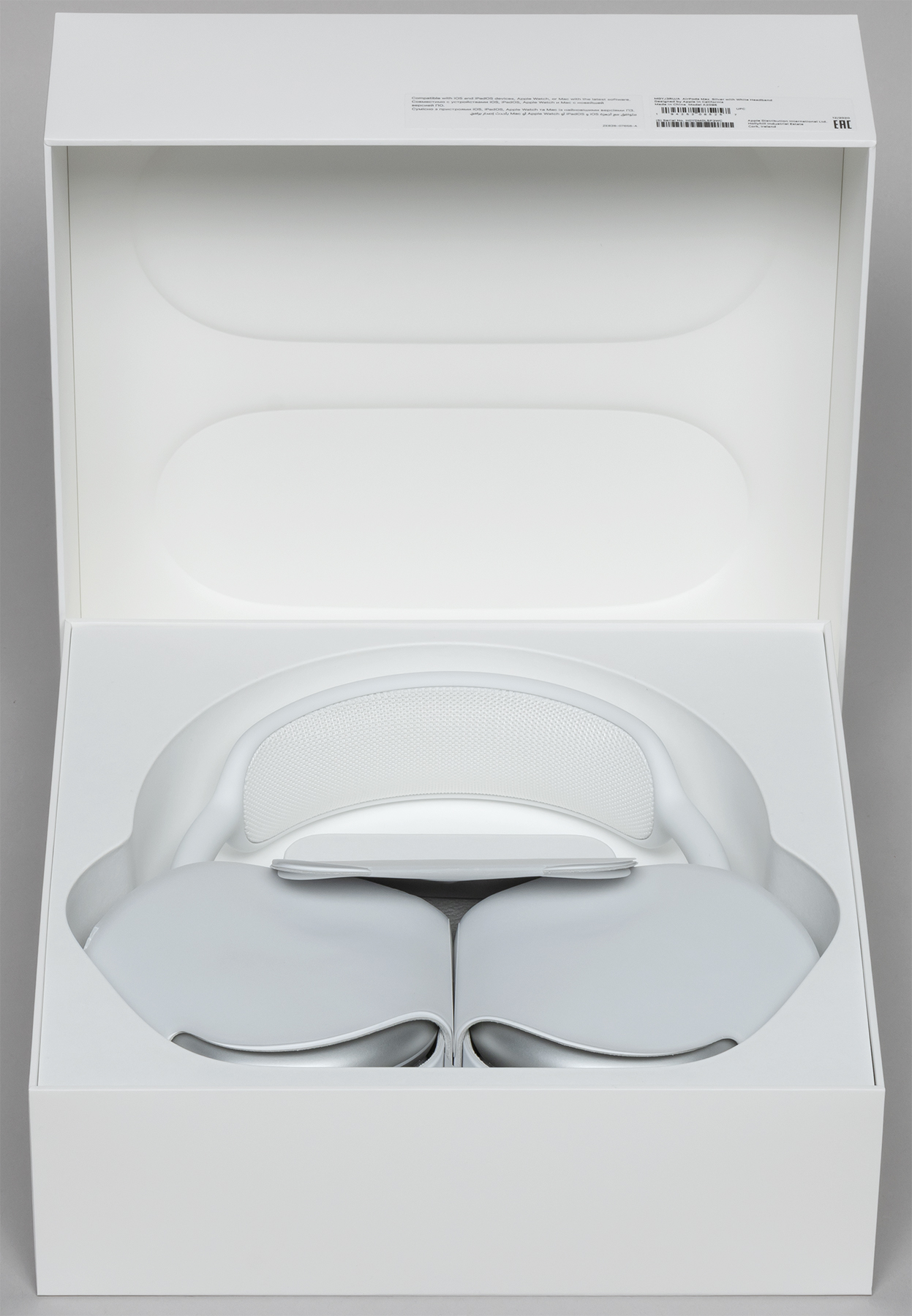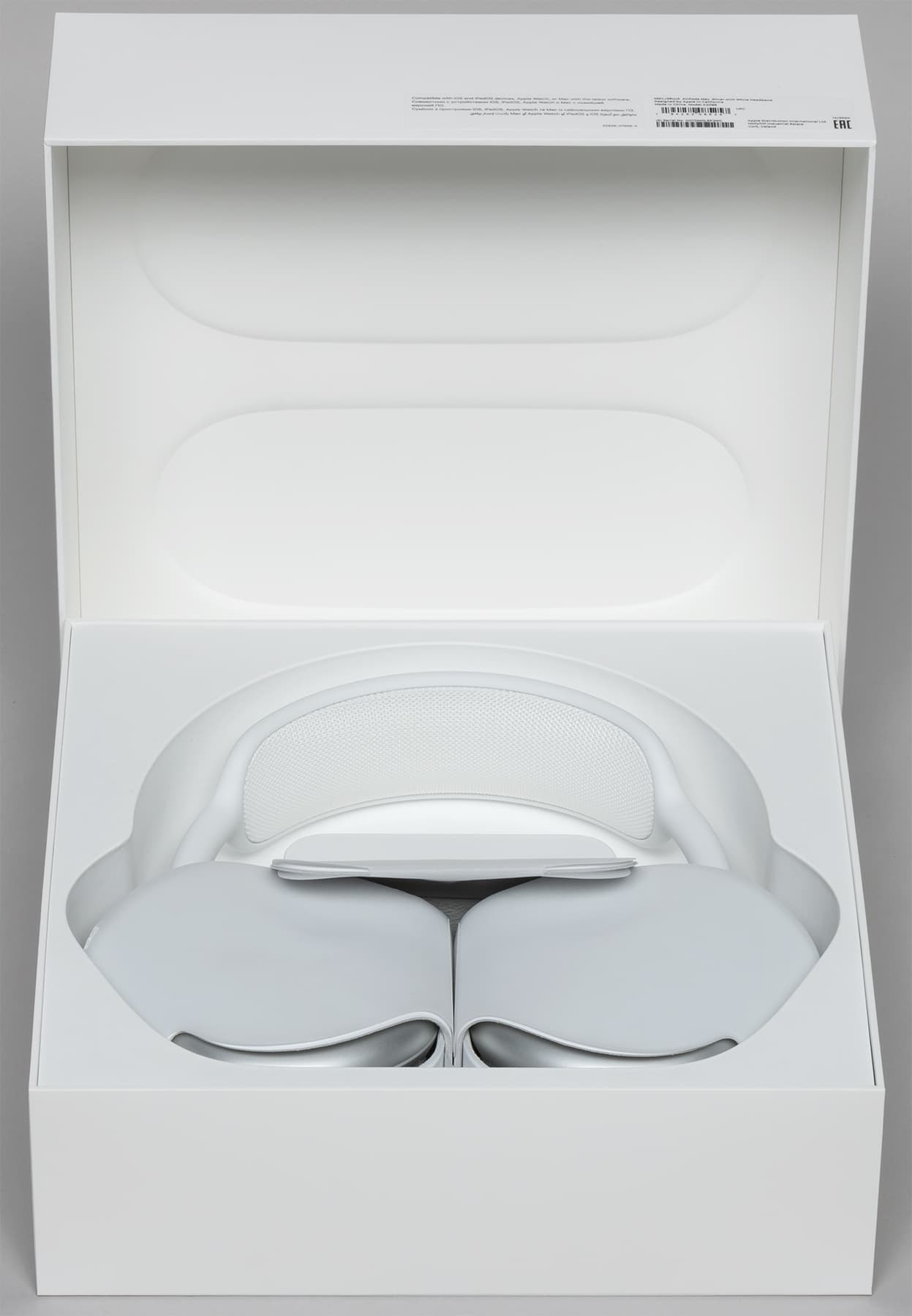 Упаковка новых AirPods Max выполнена в традиционном для Apple стиле, но обращает на себя внимание размер бокса: по длине и ширине он не сильно меньше, чем у ноутбука, а по высоте даже больше.