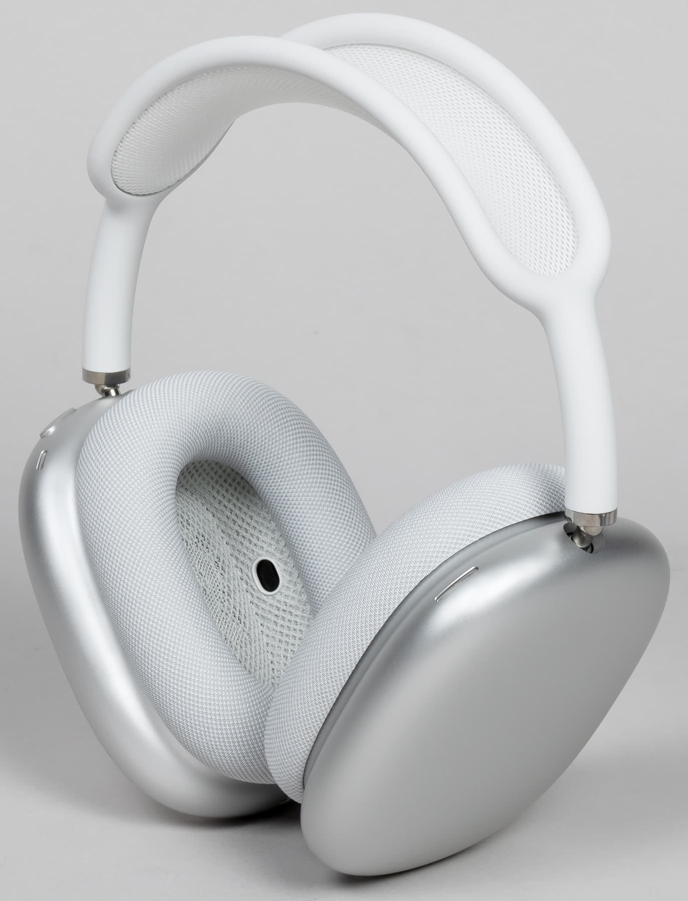 AirPods Max — одни из самых удобных накладных наушников, которые нам встречались. Достигается это за счет сетчатой ткани оголовья, распределяющей давление от веса наушников равномерно по голове. В итоге ты вовсе не ощущаешь, что на голову что-то давит, хотя сами наушники весьма увесистые. Вдобавок, дужки-крепления оголовья можно выдвинуть больше или меньше (запас — чуть более 2,5 см), а единожды настроив их под себя, можно больше не думать об этом — они достаточно упругие и не теряют «настроек».