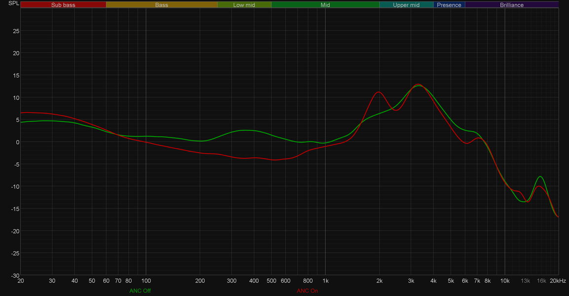 Ну и еще раз заметим, что подобные нюансы скорее добавляют в звучание небольшую «изюминку», в целом же гарнитура подает музыкальный материал приятно и сбалансированно. Традиционно проиллюстрируем сказанное с помощью графиков АЧХ.