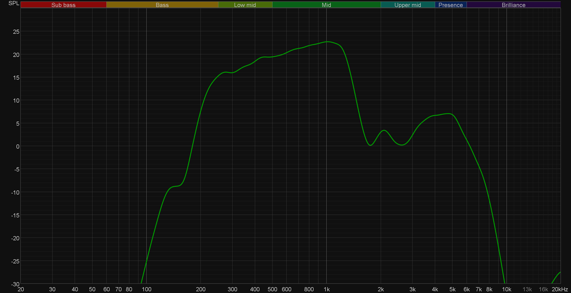 В целом, микрофон настроен довольно логичным образом. Считается, что диапазон от 300 до 500 Гц отвечает за субъективно воспринимаемое качество голоса, а от 600 и до 1 кГц — за естественность его звучания. Так что акцент на этих частотах вполне понятен, правда слишком большой подъем в области 1 кГц приводит к появлению в звучании узнаваемой «телефонной» окраски. На частоты выше 1,5 кГц и вплоть до 4 кГц приходится всего лишь около 5% энергии голоса, зато именно они отвечают за ее разборчивость. Так что настолько сильно уводить их назад, наверное, всё же не стоило. Судя по графику, мы можем ожидать более-менее естественное и полновесное звучание голоса, но при этом не самое разборчивое и немного гулкое.