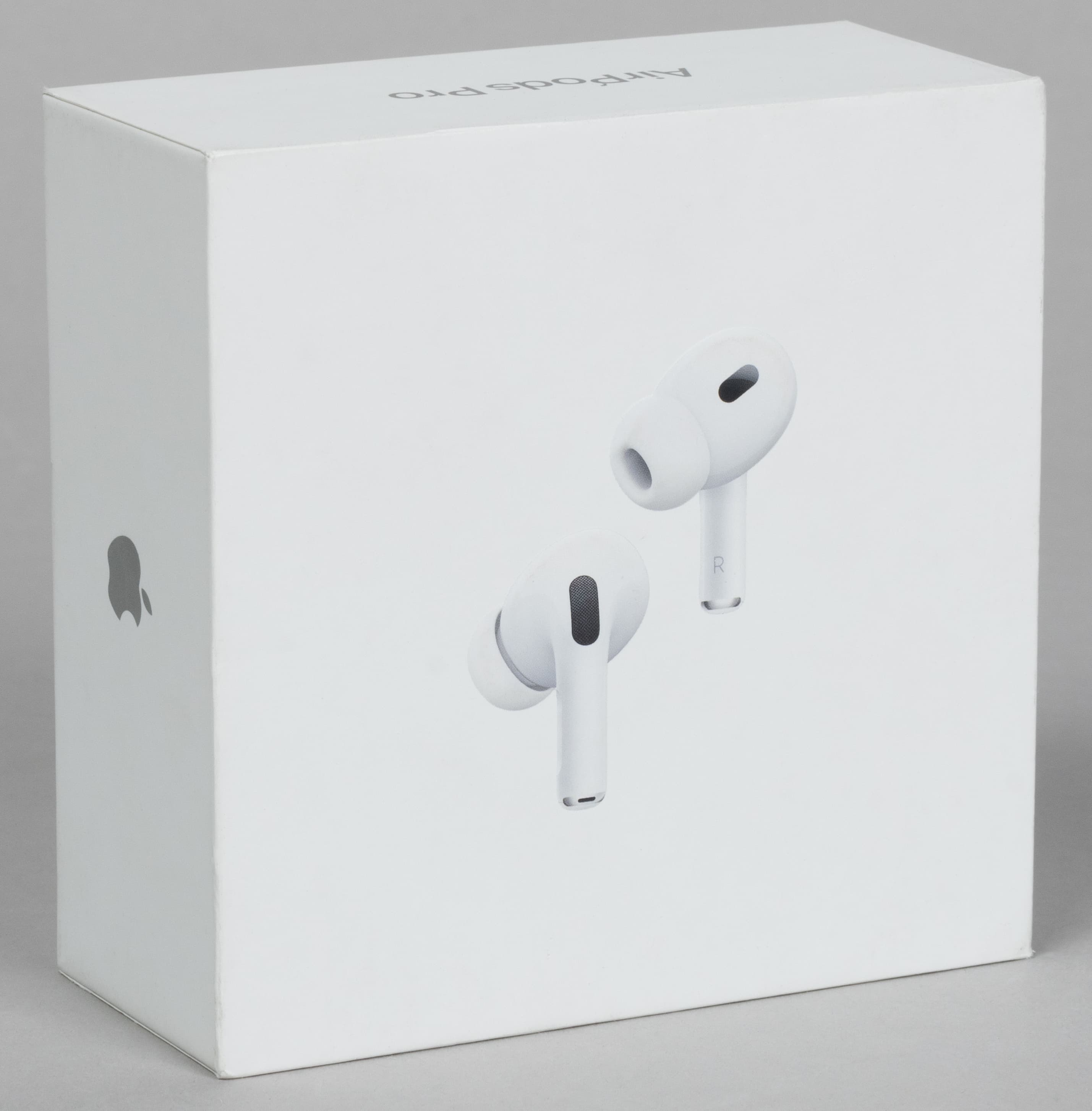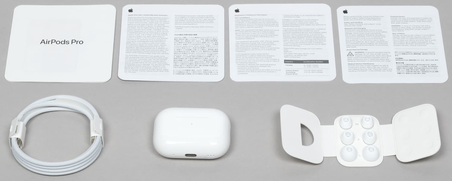 Поставляется AirPods Pro 2 в белой коробке со съемной крышкой, на которую нанесено изображение устройства — тут всё как обычно у Apple.