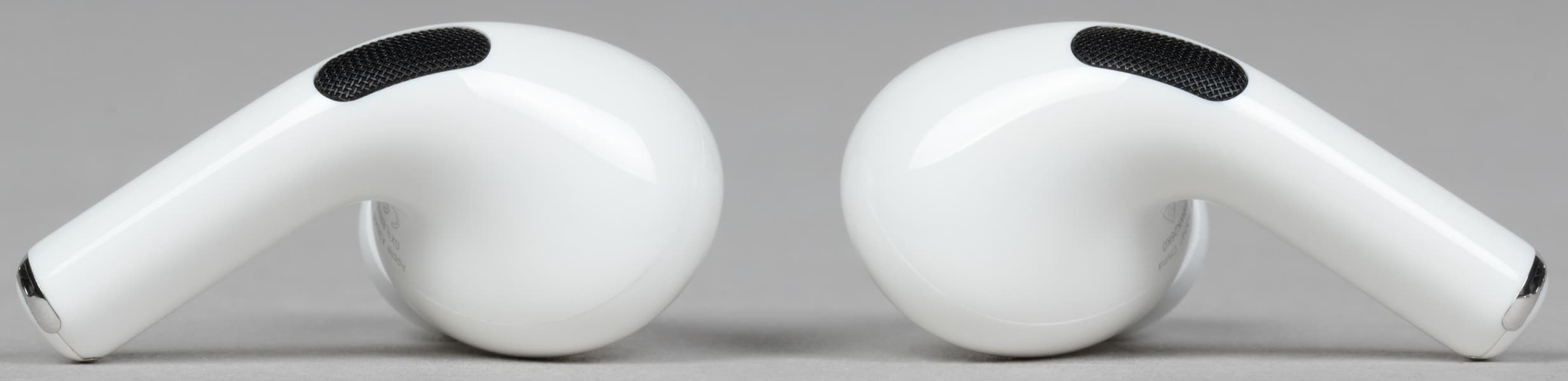 Микрофоны системы активного шумоподавления размещены на внешней стороне ножек сверху — их наличие подчеркнуто с помощью контрастной черной сеточки.