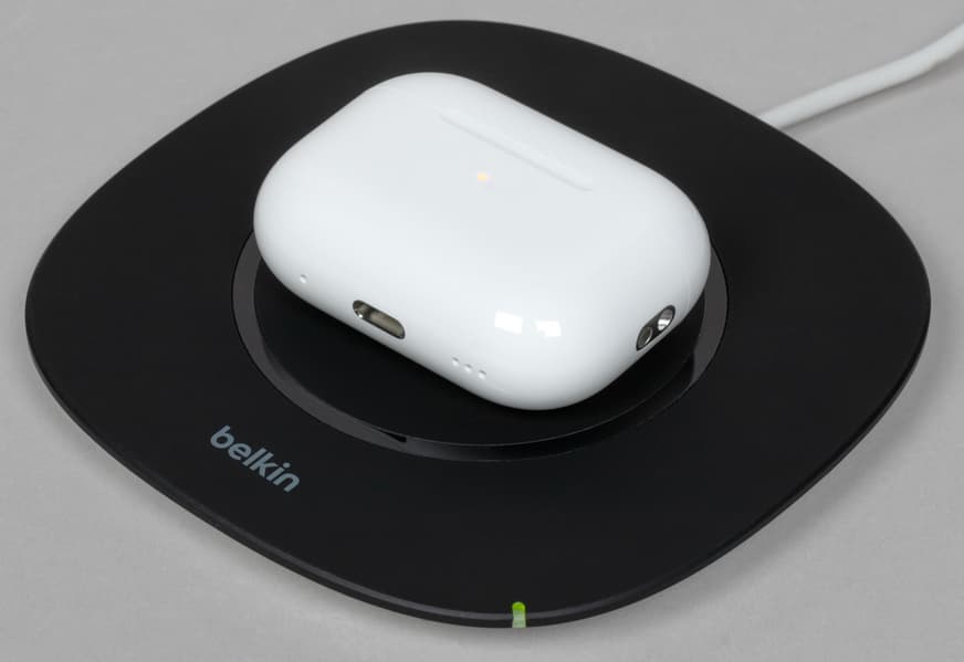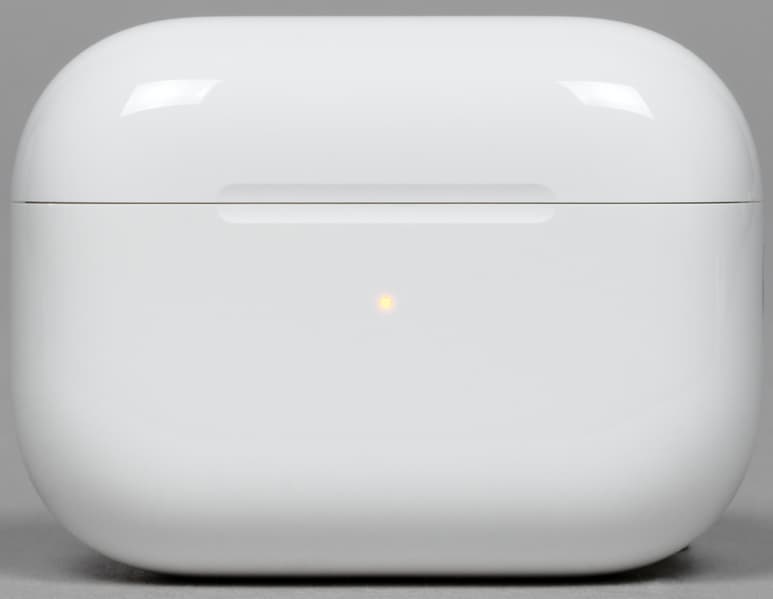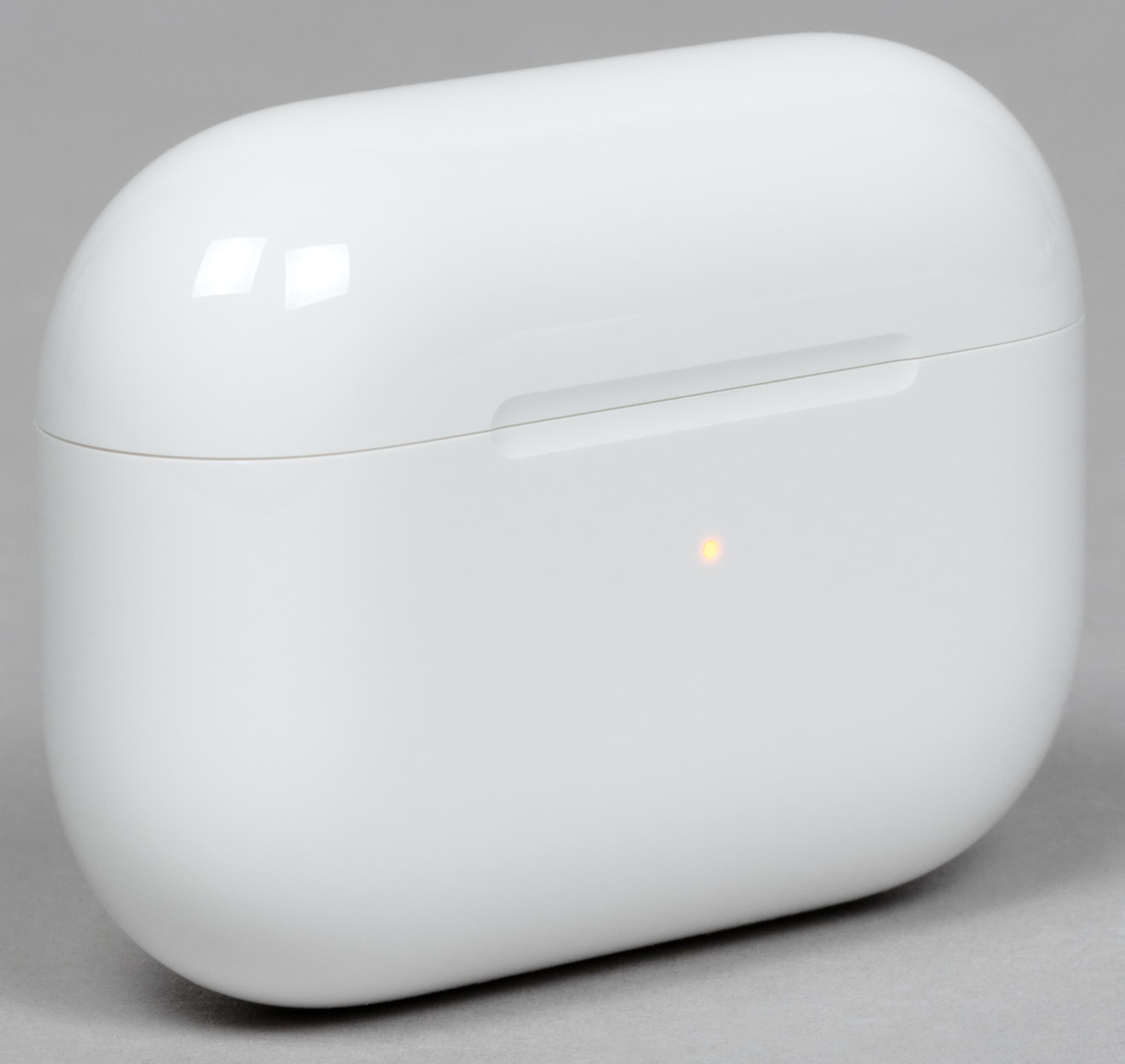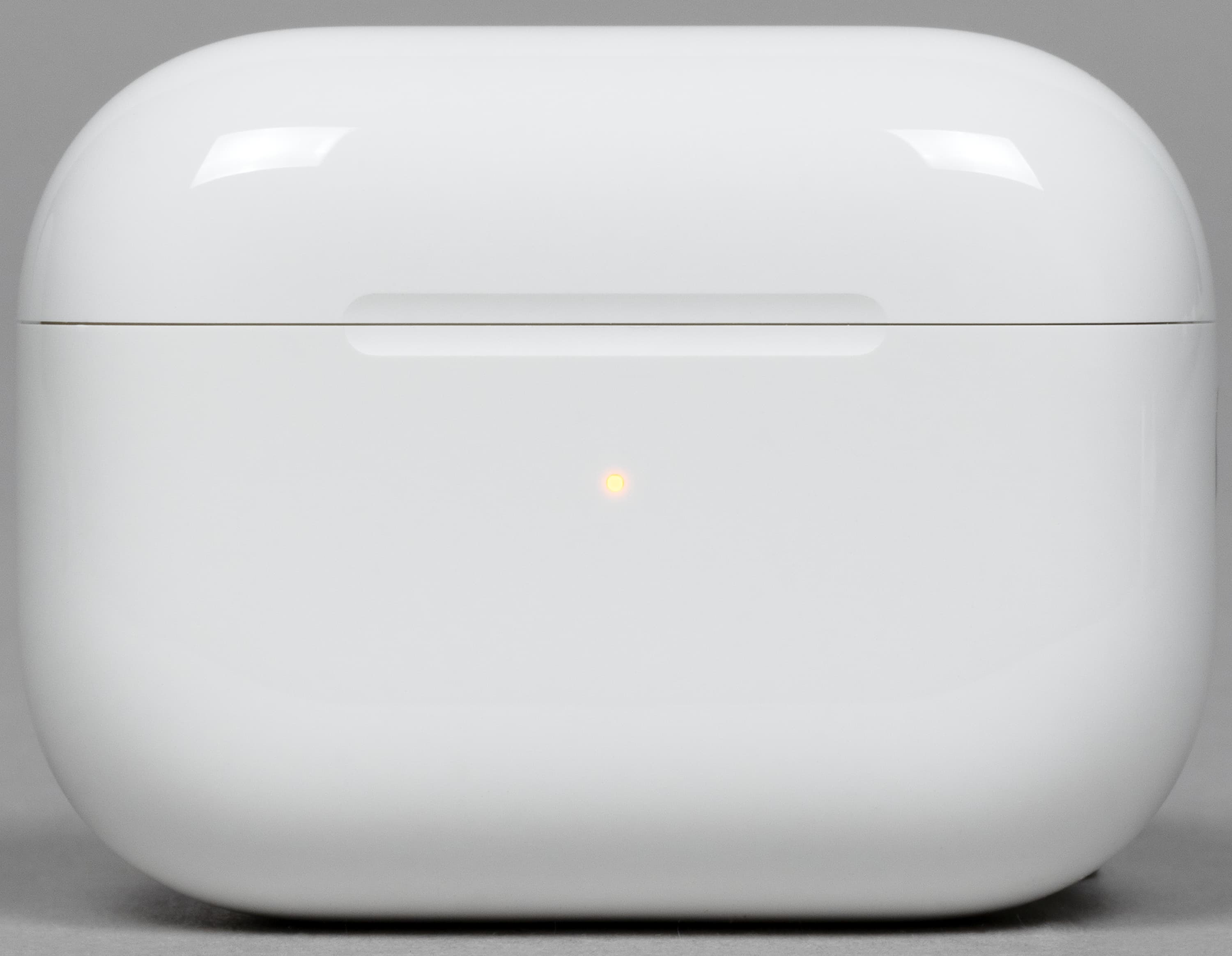 Зато поддерживаются беспроводная зарядка Qi и MagSafe. В момент старта зарядки динамик внутри кейса делает радостный «бздынь», а на передней панели загорается оранжевый индикатор. Использовать комплектный кабель совершенно не обязательно — в ходе тестирования мы неоднократно заряжали гарнитуру другими, оказавшимися под рукой.