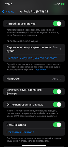 «Пространственное аудио» можно отключить, хотя особых причин делать этого мы не нашли. Сервис поиска устройства работает корректно — можно увидеть последнее местоположение на карте, активировать воспроизведение звуков наушниками или динамиком кейса, позволяющего найти их где-нибудь в не очень шумном помещении.