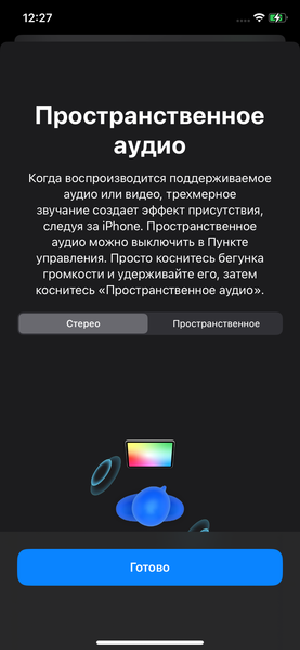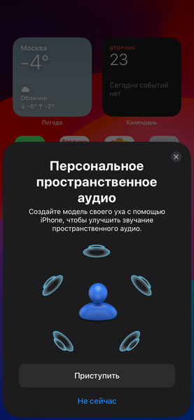 Что же касается «пространственного аудио», тот тут всё очень неоднозначно. До «вау-эффекта» там далеко, несмотря на всяческие настройки с помощью камеры и прочую «персонализацию». Тем не менее в Apple Music есть адаптированный под эту функцию контент, который звучит действительно впечатляюще — попробовать точно стоит. Специальный раздел в меню настроек позволяет сравнить звучание в формате «до и после».