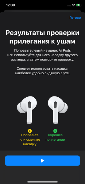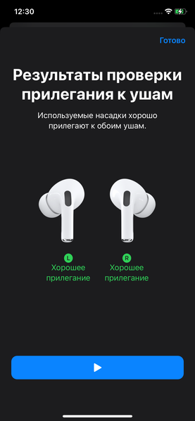 Ну и напоследок упомянем функцию проверки правильности посадки. Работает она ровно так же, как и в десятках других наушников: в динамики транслируется приятная мелодия, которую пытаются уловить внешние микрофоны. Если у них это получается — значит, посадка слабовата, силиконовые насадки плохо прилегают к слуховому проходу. Ну а если нет — всё нормально. В ходе тестирования мы специально немного ослабили крепление одного из наушников — система сразу это заметила. Стоило его поправить, как результаты проверки изменились. Так что функция действительно работает и помогает не только скорректировать положение гарнитуры, но и выбрать подходящие силиконовые насадки.