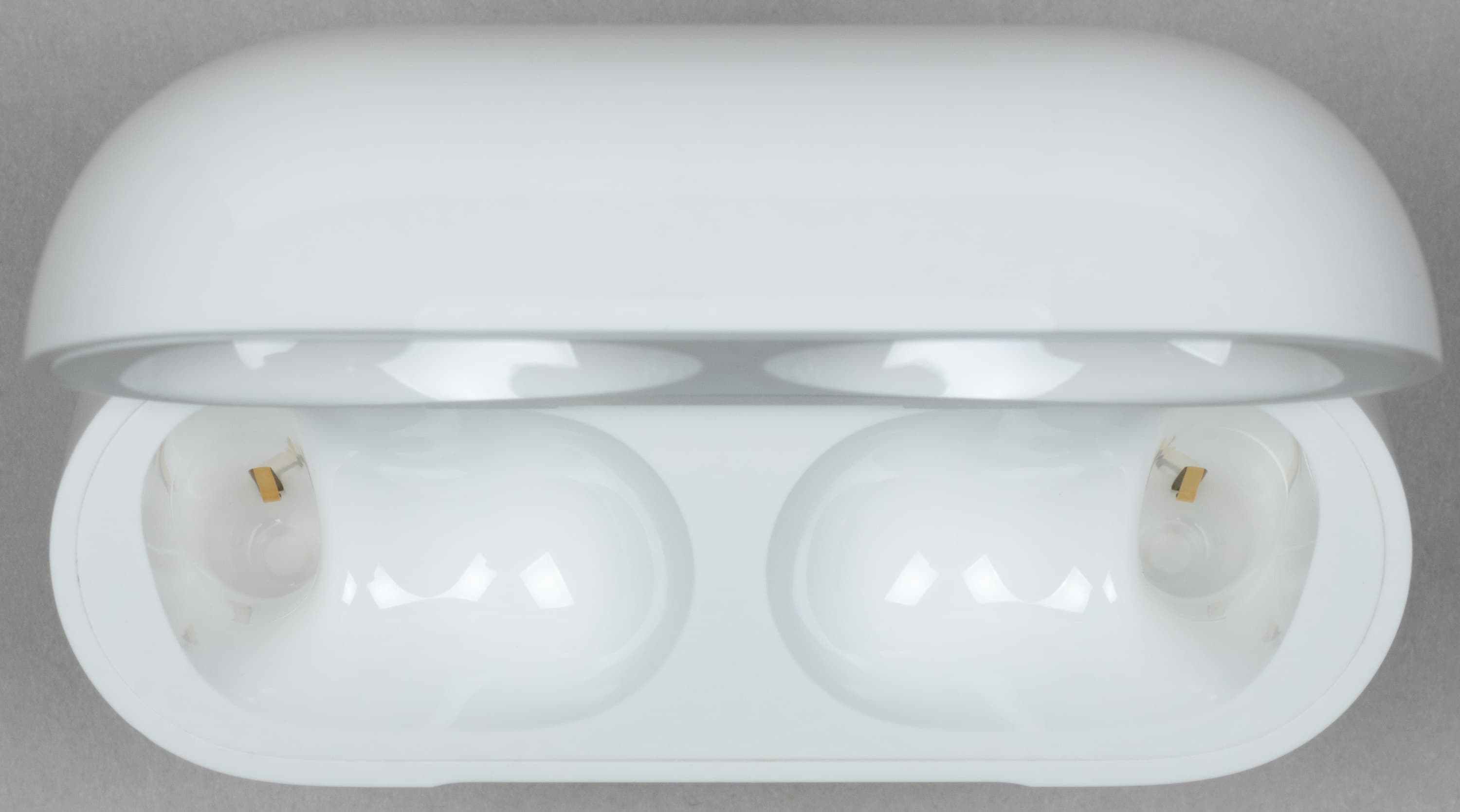 Наушники удерживаются на своих местах с помощью магнитных креплений. Внутри слотов видны подпружиненные контакты для зарядки.