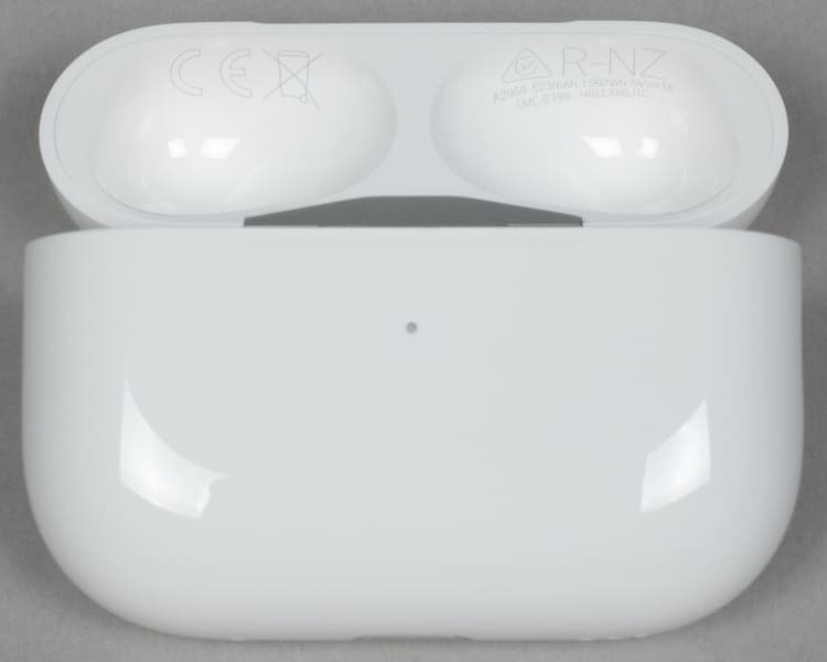 По центру передней панели кейса размещены маленький светодиодный индикатор зарядки и состояния гарнитуры, а также небольшое углубление, облегчающее открытие крышки. В необходимости последнего есть некоторые сомнения: крышка прекрасно откидывается пальцем той же руки, что удерживает кейс. Так что он выполняет, скорее, декоративную функцию.