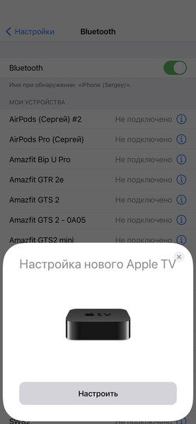 Первоначальную настройку нового Apple TV 4K можно провести с помощью iPhone. Достаточно подключить оба устройства к одной Wi-Fi-сети и расположить рядом.