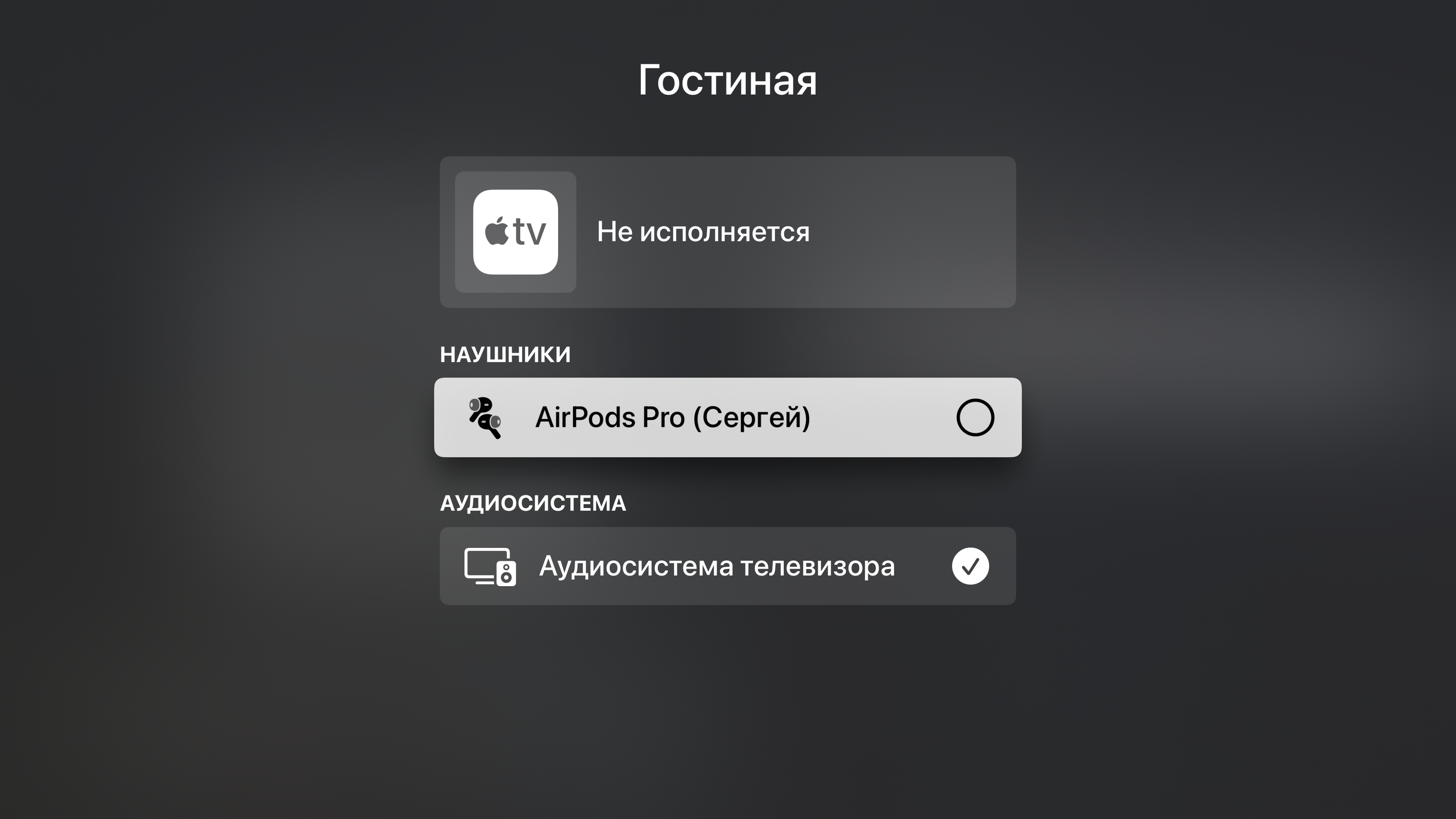 Интересно, что можно подключить и два экземпляра AirPods — например, чтобы смотреть фильм вместе с кем-то, наслаждаясь куда более качественным звуком, чем возможен через ТВ-динамики.