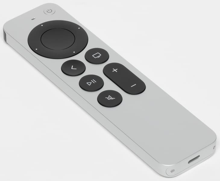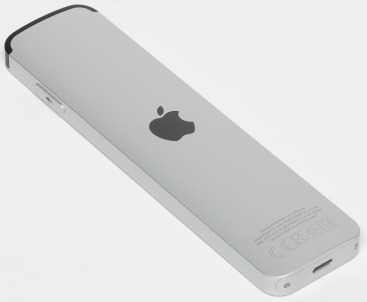 Кабель Lightning нужен для подзарядки пульта ДУ и больше ни для чего другого (хотя, понятно, если вы пользуетесь какими-либо мобильными устройствами Apple, он будет совсем нелишним). Удивительно, что Apple по-прежнему кладет обычный USB-A вместо более актуального USB-C. А это значит, что зарядить пульт от блока питания iPad или MacBook не удастся.