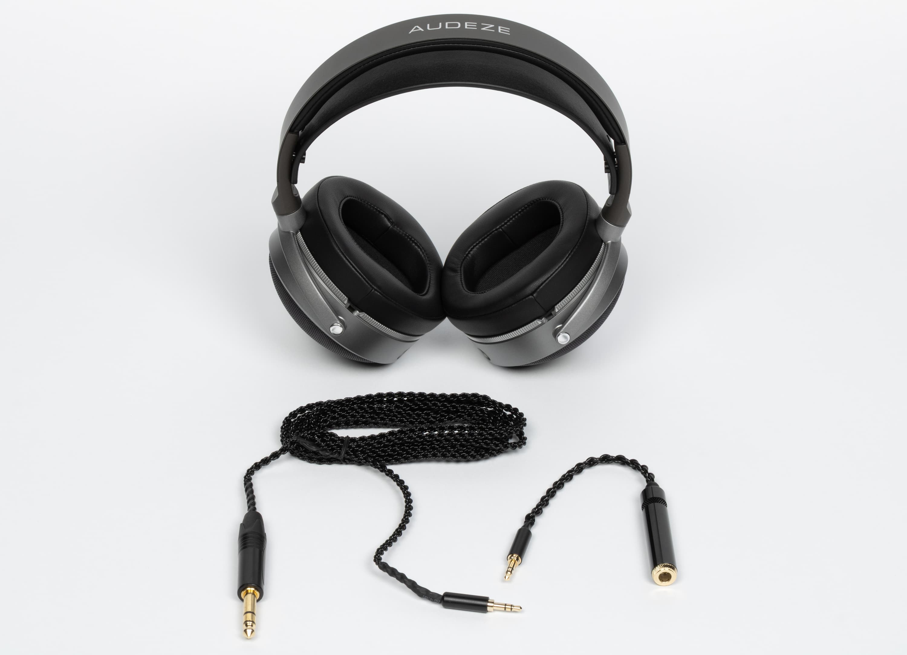 Качество кабелей замечательное — ничего другого от Audeze мы и не ждали. Они выглядят аккуратно и дорого, отлично собраны и достаточно прочные для длительной эксплуатации, в том числе при повышенных нагрузках в студии. Длина кабеля для соединения с источником — 245 см, переходник заметно короче — 21 см между краями коннекторов при подключении.