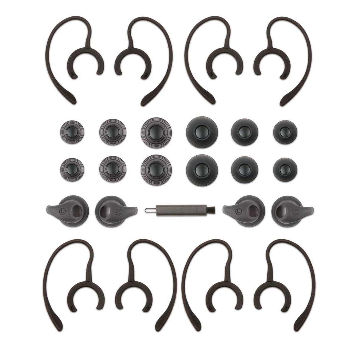 В комплекте довольно много запасных частей на случай их утери или повреждения. В случае потери всего комплекта можно дозаказать еще один у производителя. В комплекте имеется инструмент для очистки наушников. Резинки и дужки довольно активно притягивают грязь и пыль и быстро теряют привлекательный внешний вид. На наш взгляд, лучший вариант очистки этих аксессуаров — их мытье с мылом под струей воды с последующей сушкой.