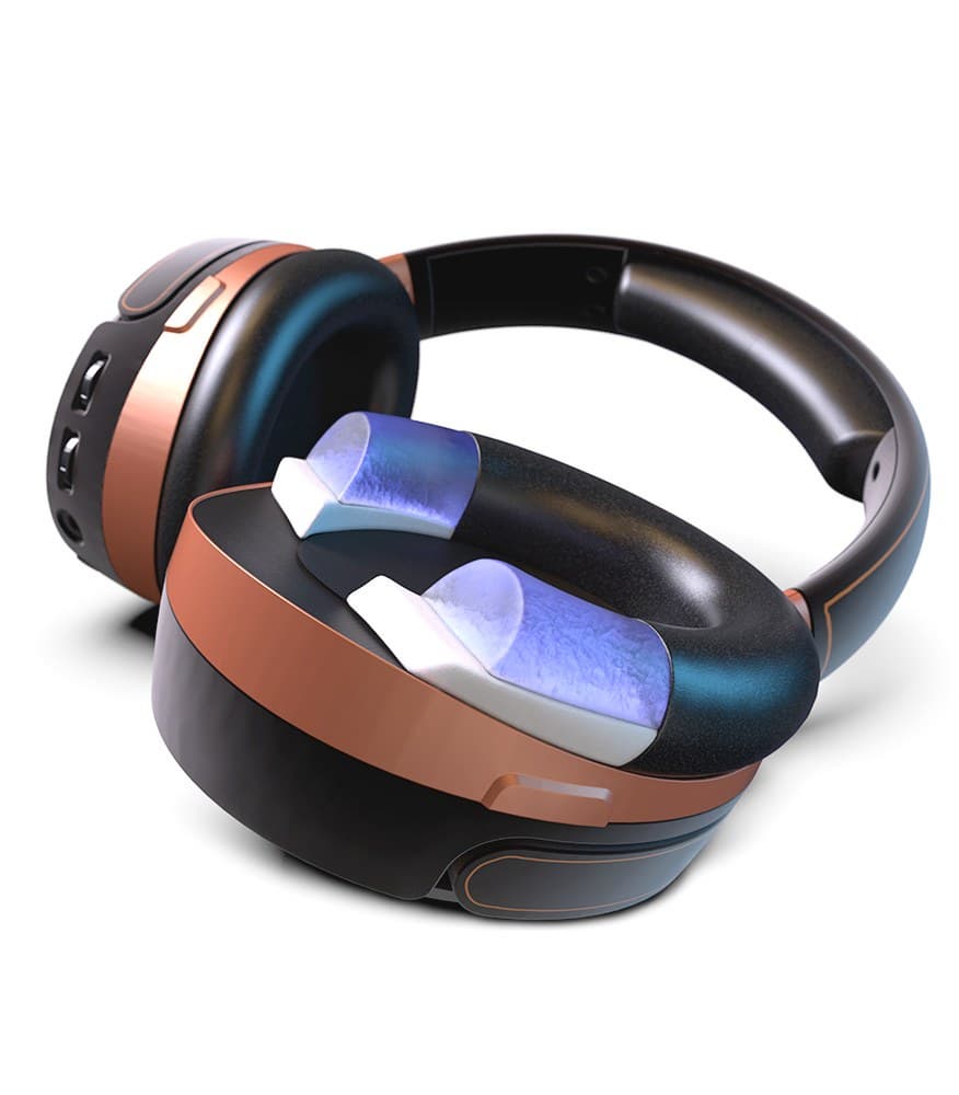 В отличие от проводных наушников Audeze, Mobius обладают более привычным дизайном, а также сниженным весом и продуманной эргономикой. Здесь используются чашки овальной формы, без переплаты за экзотические материалы отделки. Оголовье имеет традиционную конструкцию с выдвигающимися дужками. Наушники доступны в трех цветовых вариантах: серебристом, медном и голубом.