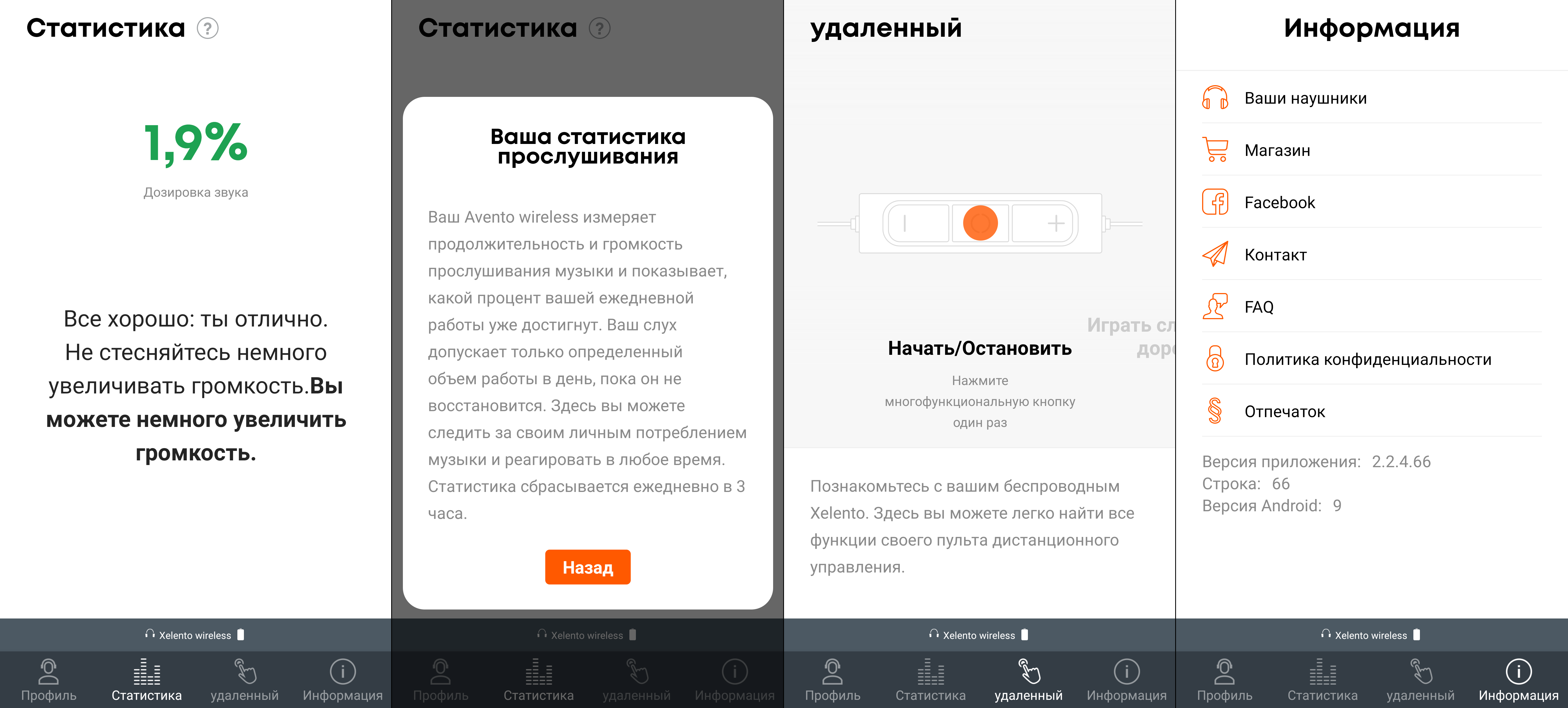На других вкладках приложения можно также найти немало интересного. Например, статистику прослушивания: программа считает, сколько музыки прослушал пользователь, после чего дает рекомендации — не пора ли остановиться и дать ушам немного отдохнуть. Также есть возможность познакомиться с функциями пультов управления и справочной информацией.