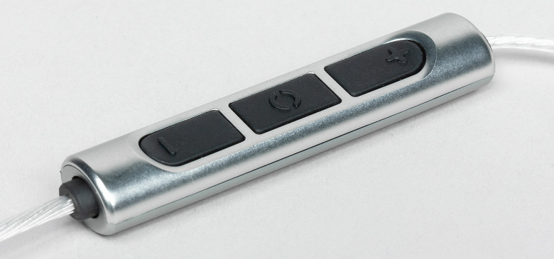 Кабель для проводного подключения и беспроводной модуль оснащены пультами управления. По форме они мало отличаются, но пульт на Bluetooth-модуле несколько крупнее.