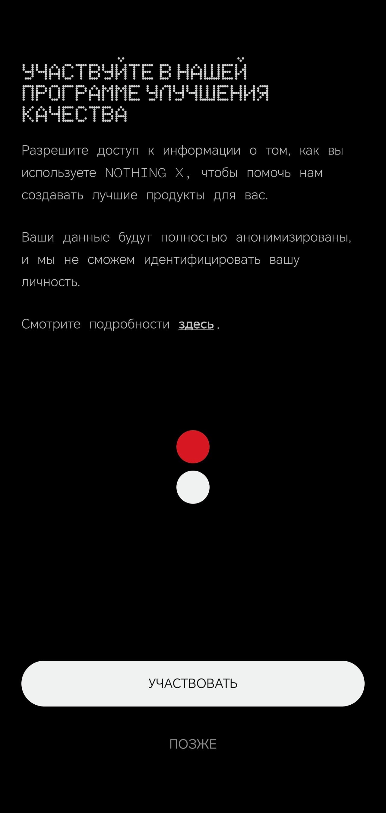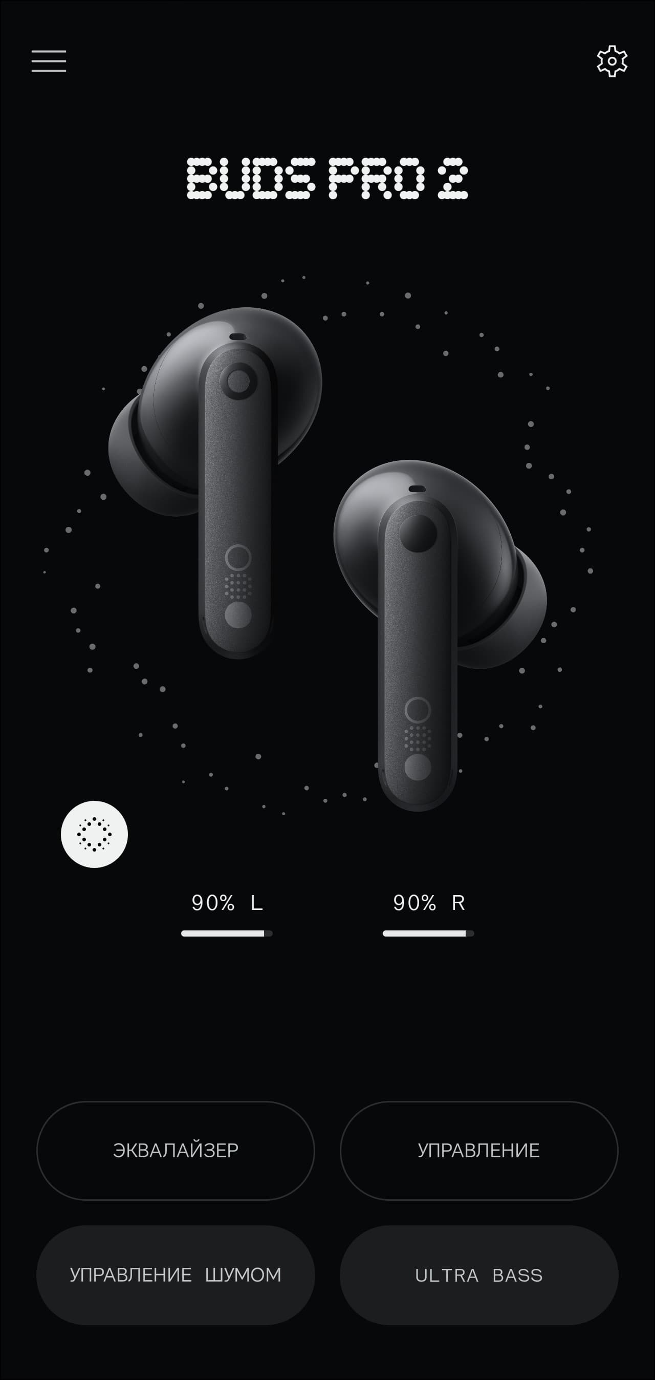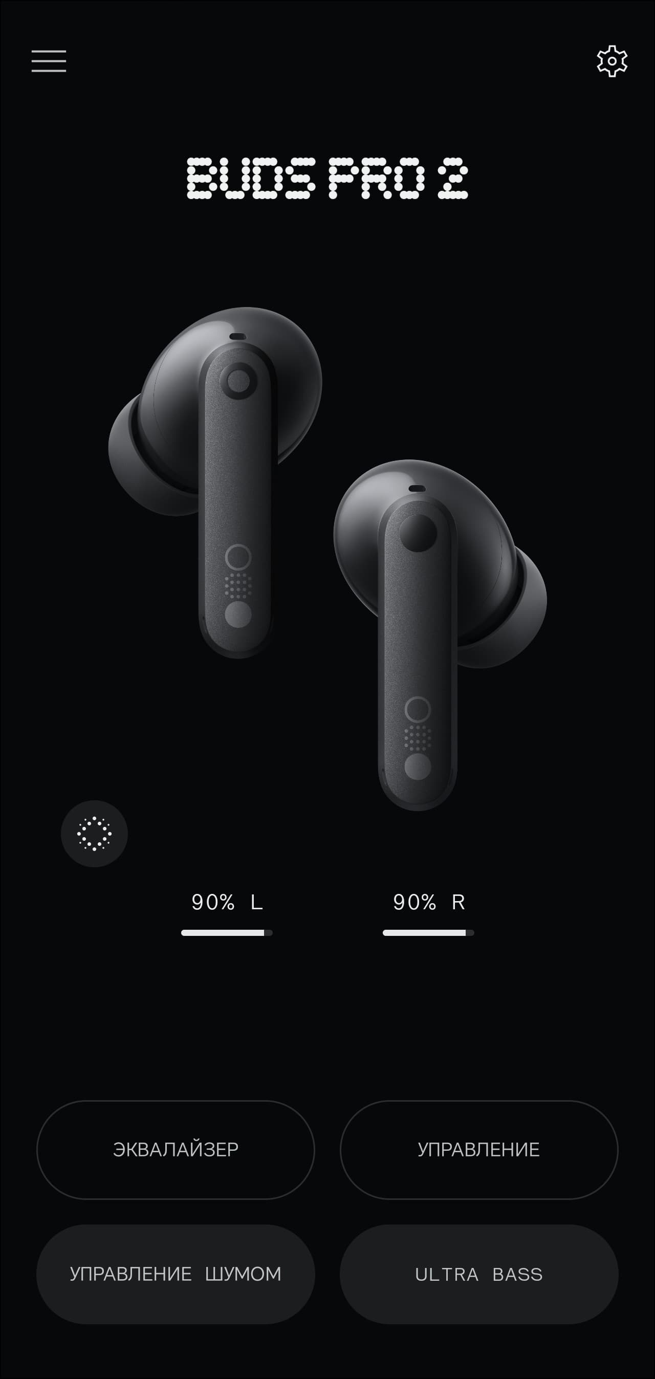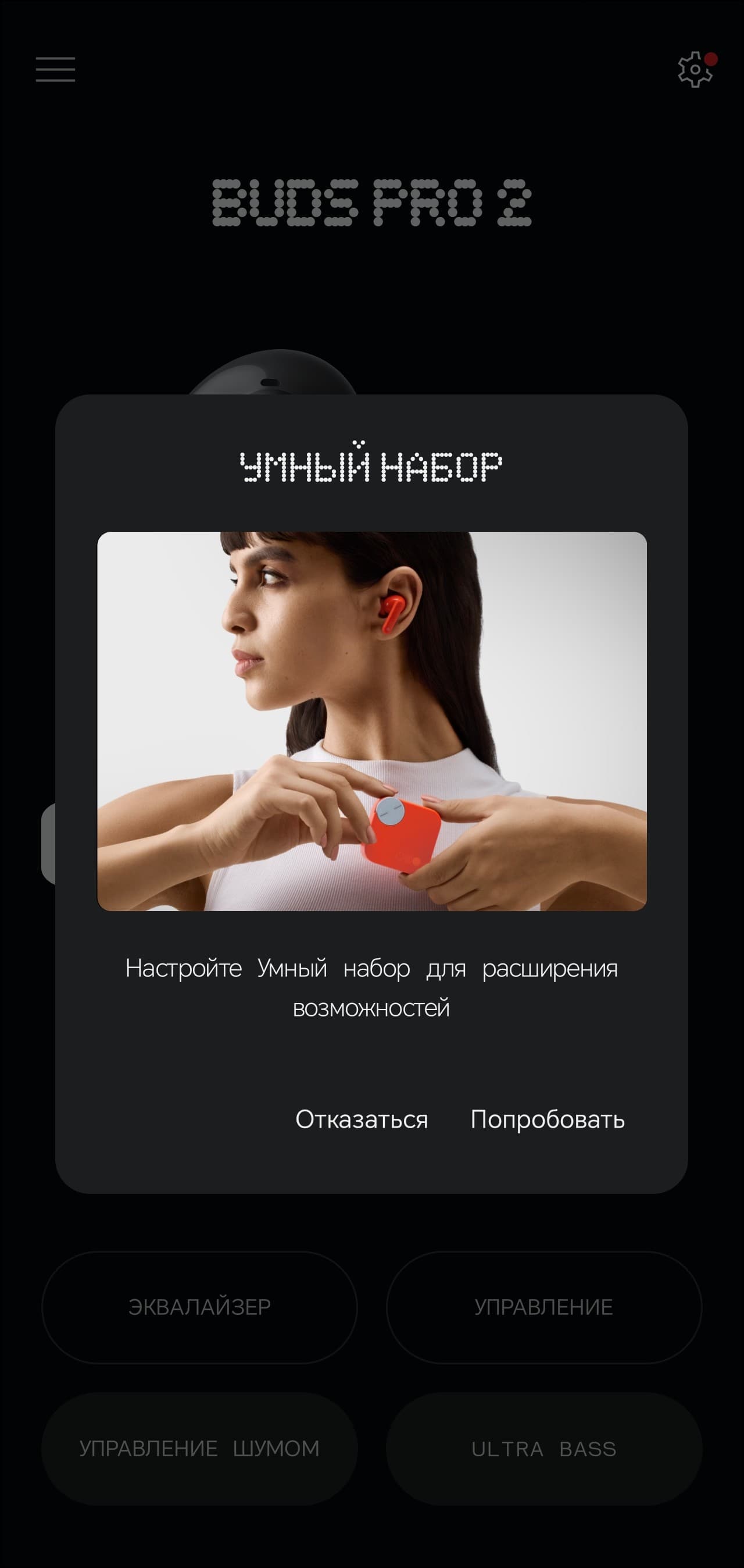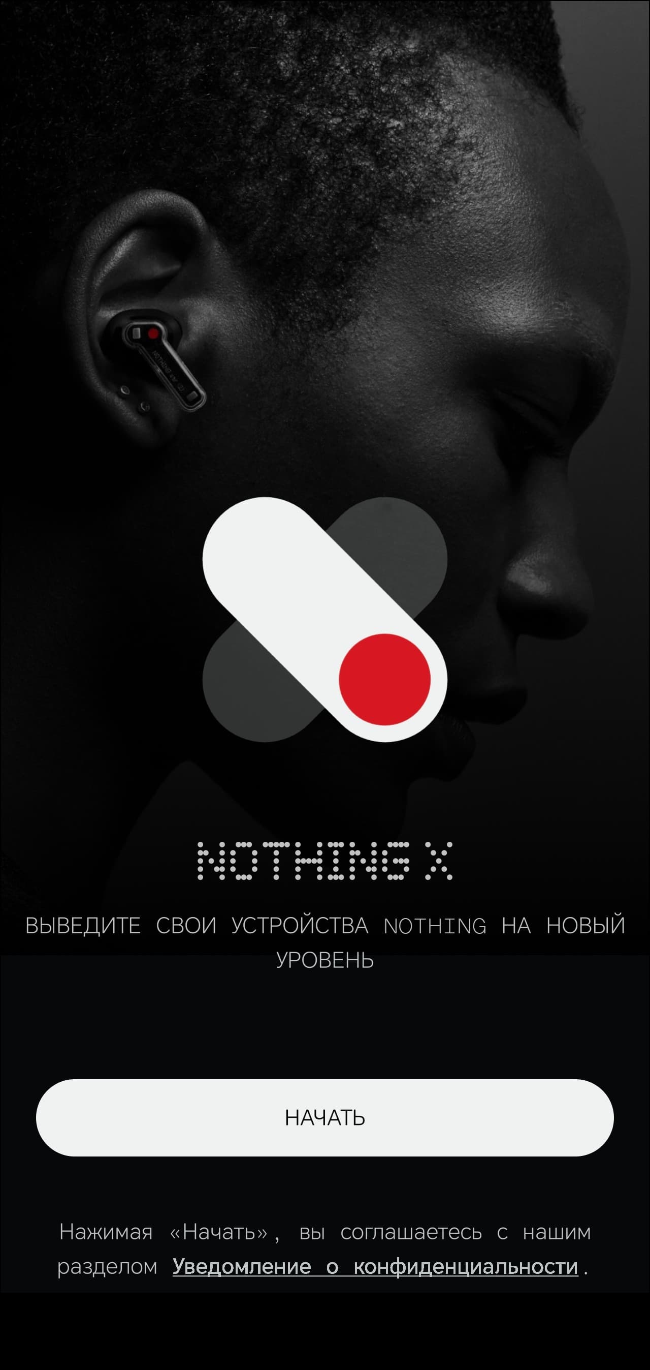 Устанавливаем, даем все необходимые разрешения. Приложение сразу же предлагает познакомиться с главной «фишкой» устройства — кейсом с регулятором, который почему-то называет «умным набором». Перевод на русский в целом сделан далеко не идеально, но ничего, разобраться можно. В приложении используется фирменный шрифт, дизайн очень стильный и соответствует общей концепции оформления как наушников, так и всей линейки Nothing в целом.
