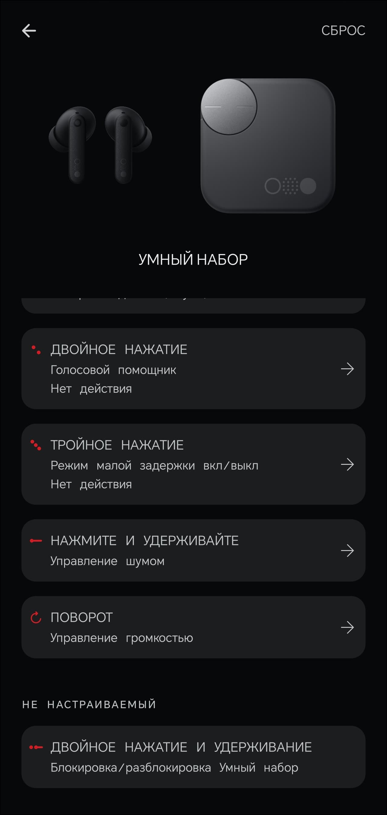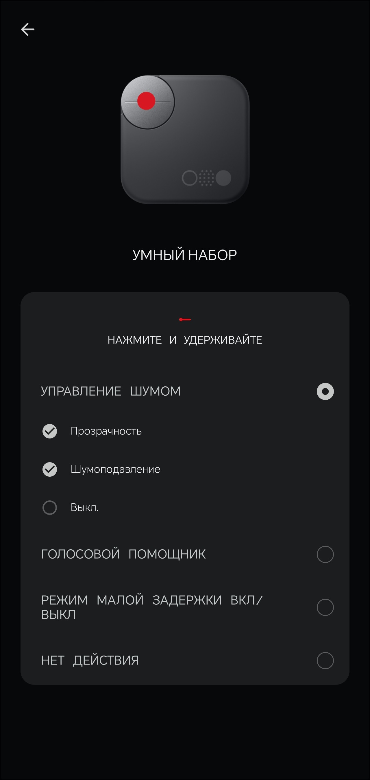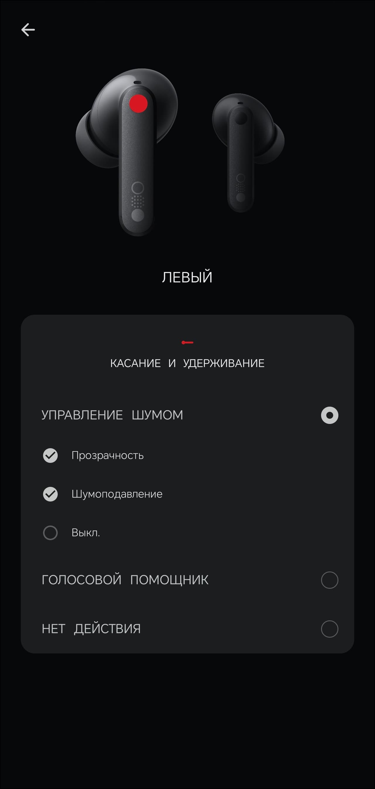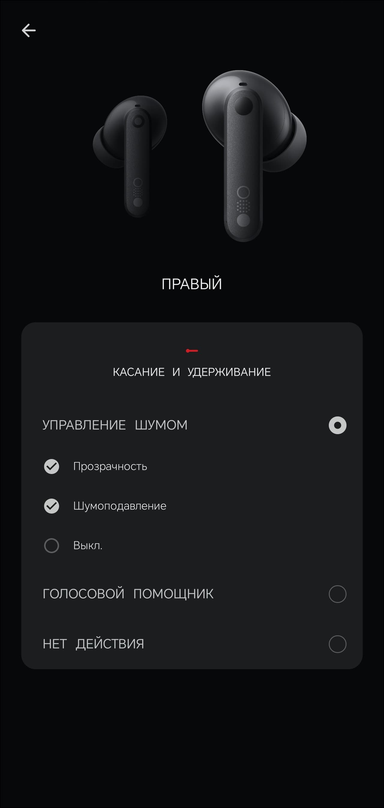 К сожалению, список пролистываемых функций «шумодава» настраивается для обоих наушников одновременно — «повесить» на один режим прозрачности, а на другой непосредственно шумоподавление не выйдет. В остальном же профиль управления очень пластичный, настроить его под свой вкус должно получиться у большинства пользователей.