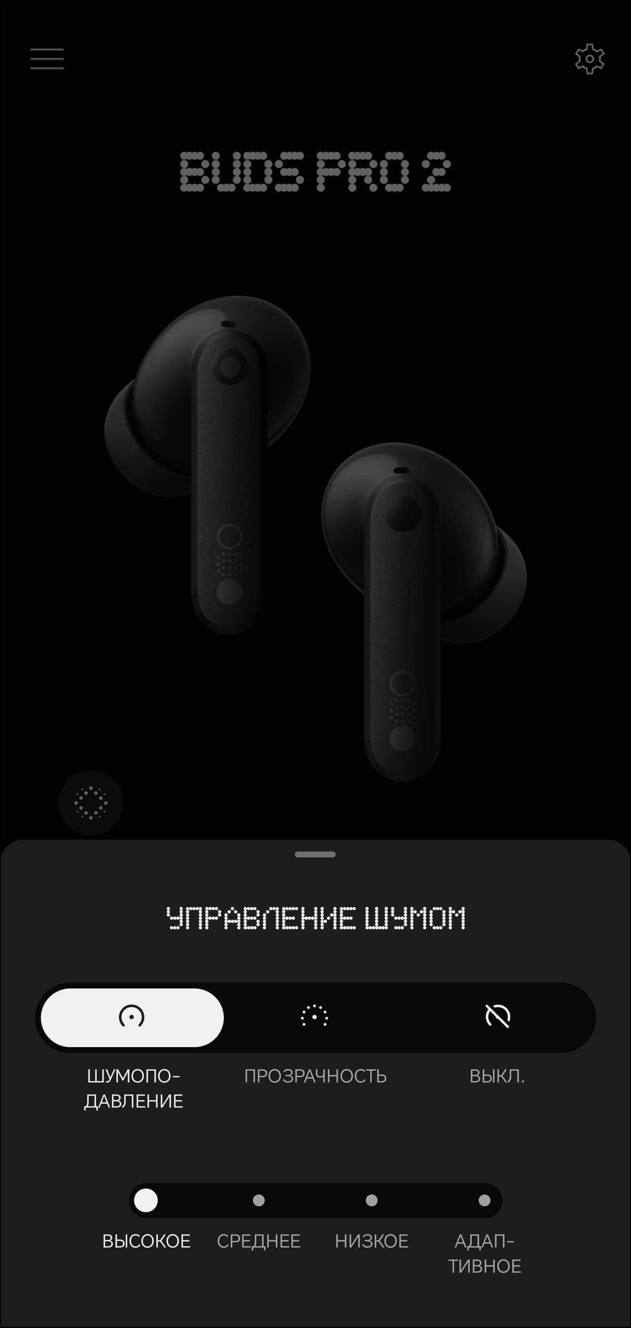 Система активного шумоподавления имеет три уровня агрессивности работы: низкий, средний и высокий. Плюс есть четвертый режим — адаптивный, в котором происходит автоматический выбор одного из первых трех в зависимости от внешних условий.