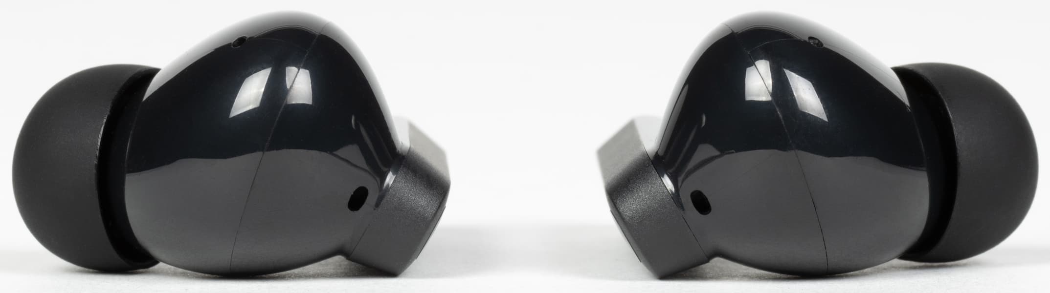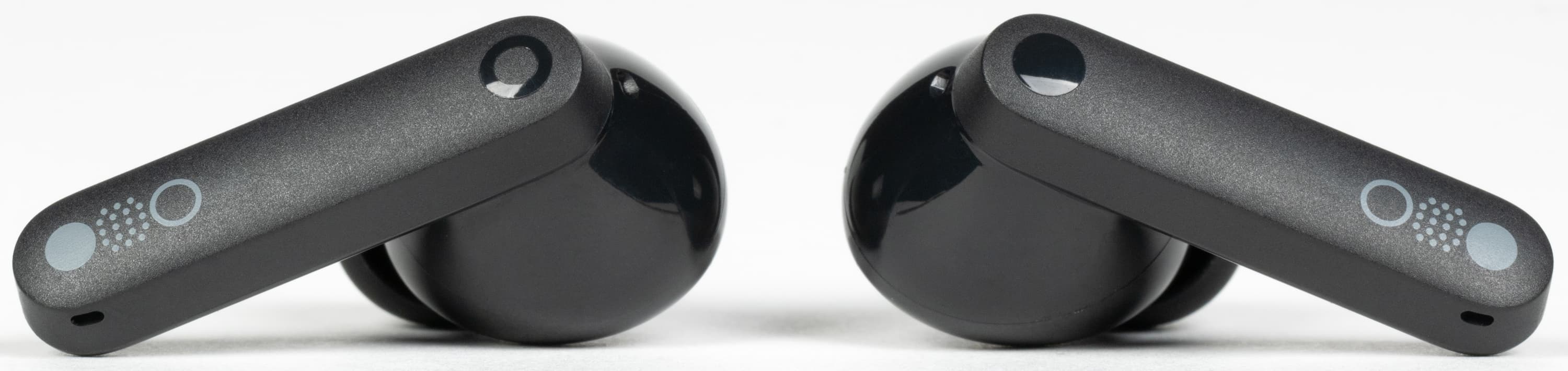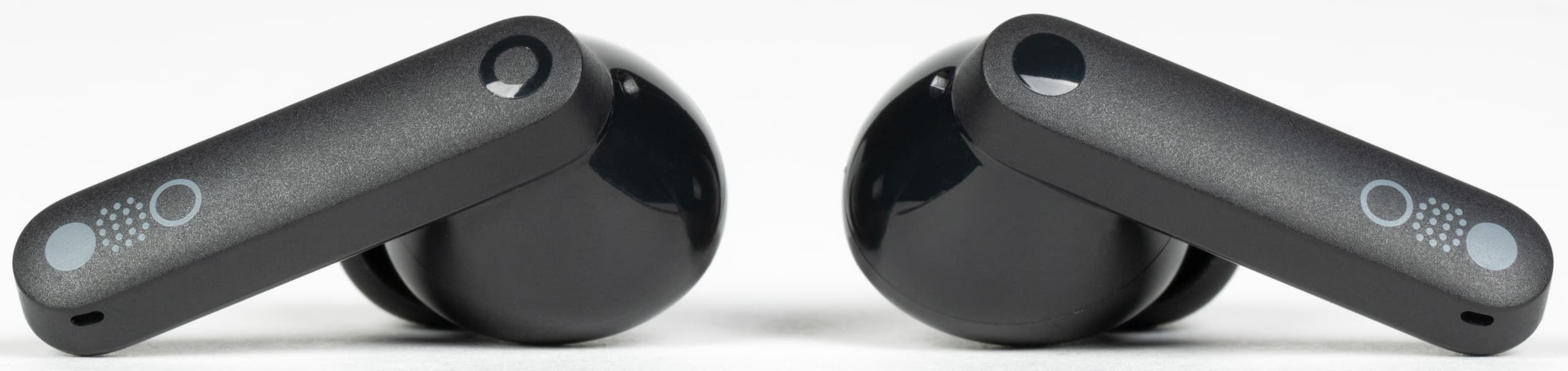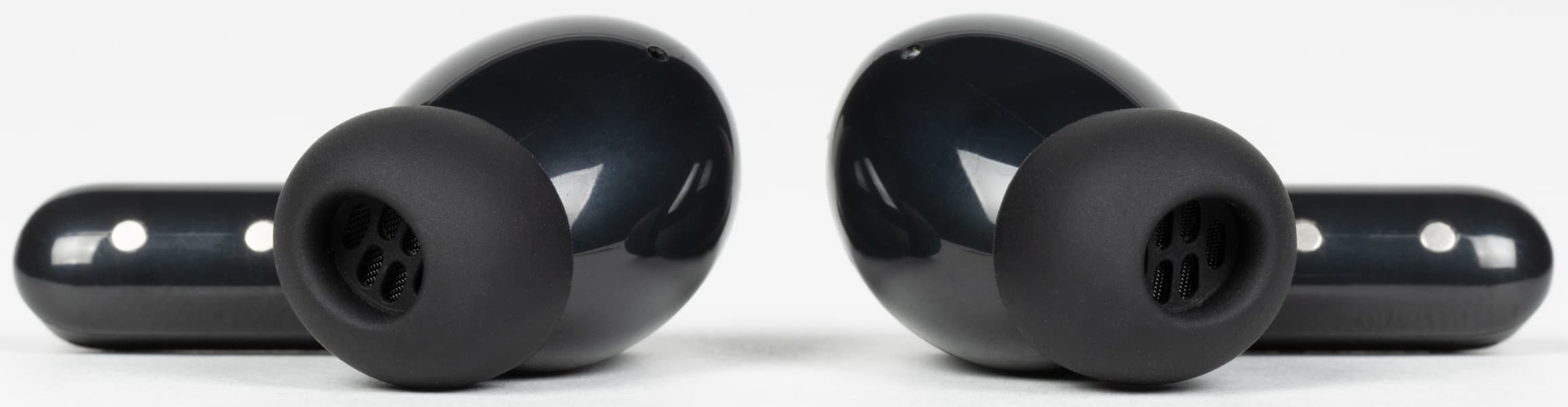 Отверстия микрофонов для голосовой связи смещены на переднюю сторону ножек, что потенциально может защитить их от «задувания» в ветреную погоду и при быстром перемещении пользователя — во время пробежки, например.