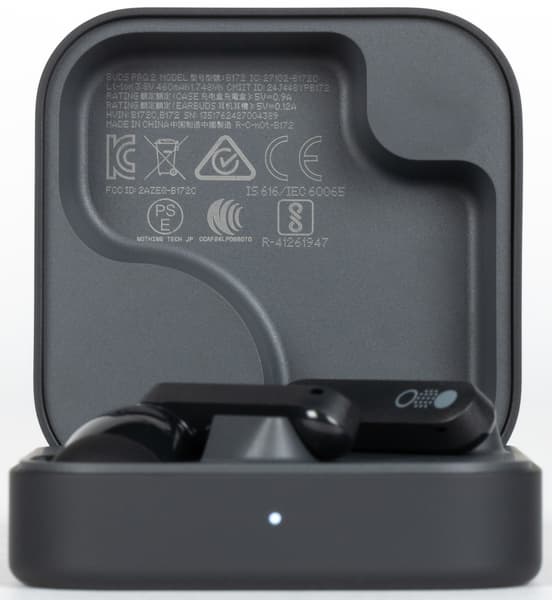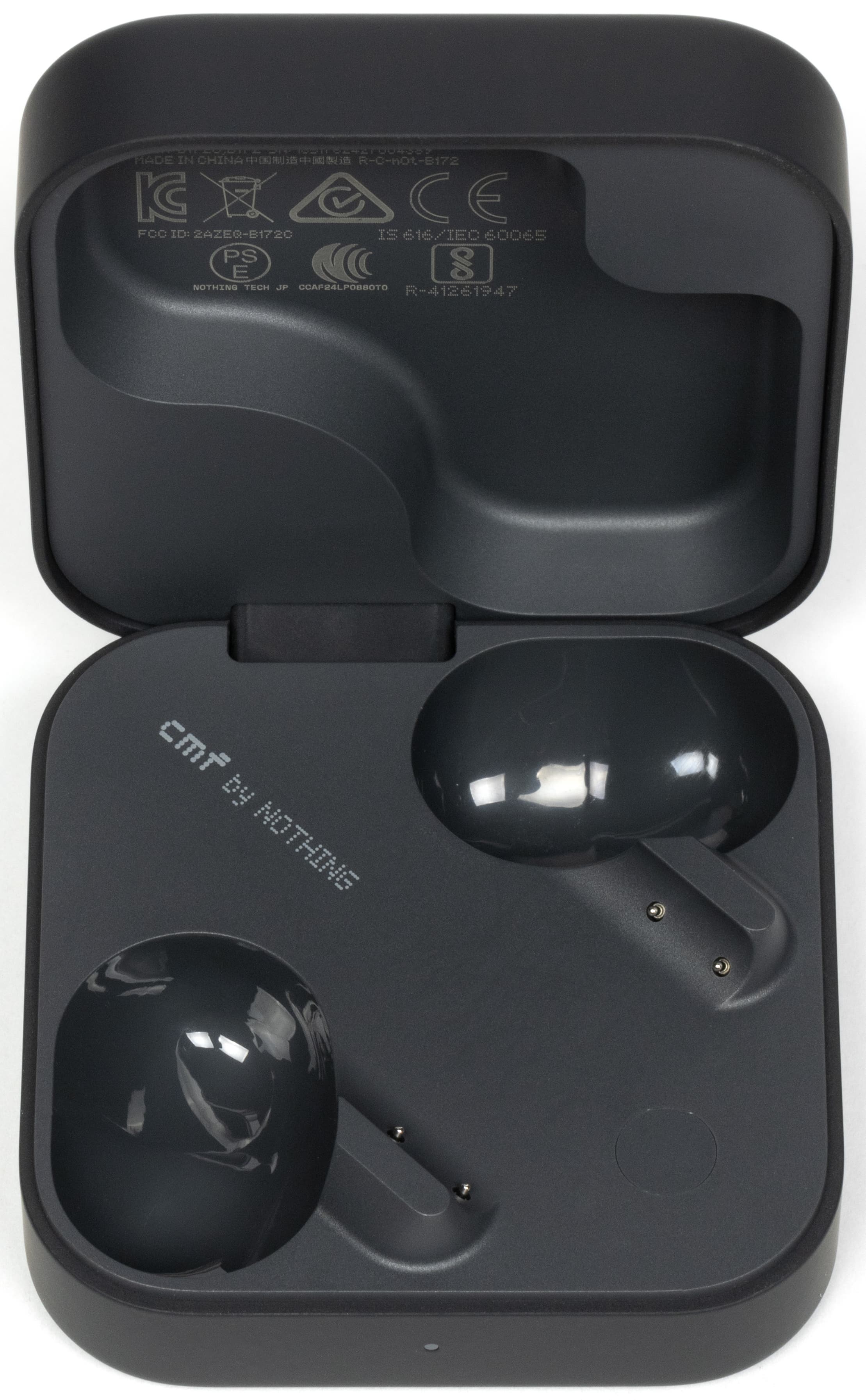 На внутренней части крышки есть специальное углубление, обеспечивающее дополнительную фиксацию наушников. Внутри него размещены краткая информация об устройстве и логотипы систем сертификации.