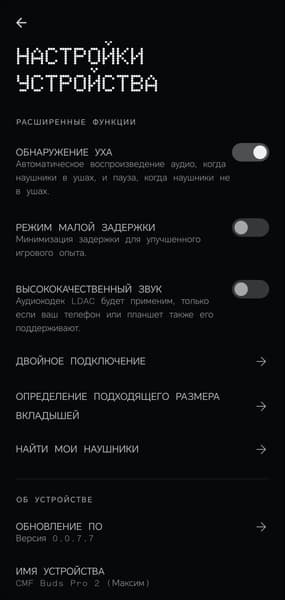 Задержка звука при просмотре видео не вызывает дискомфорта, а вот в приложениях и играх может достигать 300 мс — «рассинхроны» получаются заметными и крайне неприятными. Смена кодека не особо помогает, а активация «игрового режима» через приложение снижает задержку примерно до 120 мс — уже неплохо, но для динамичных шутеров всё равно многовато. Мультипойнт поддерживается, но требует активации через ПО Nothing X app, без которого полноценное использование гарнитуры невозможно. Потому установить его стоит непременно — это важная часть подготовки устройства к работе.