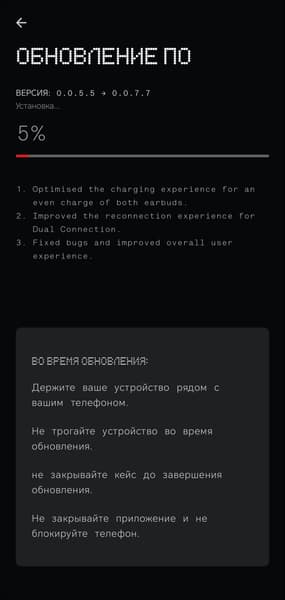 После первичной настройки приложение сразу проверяет наличие обновлений встроенного ПО. Если они есть — предлагает поставить. Дело это нужное, соглашаемся. Весь процесс занимает пару минут.