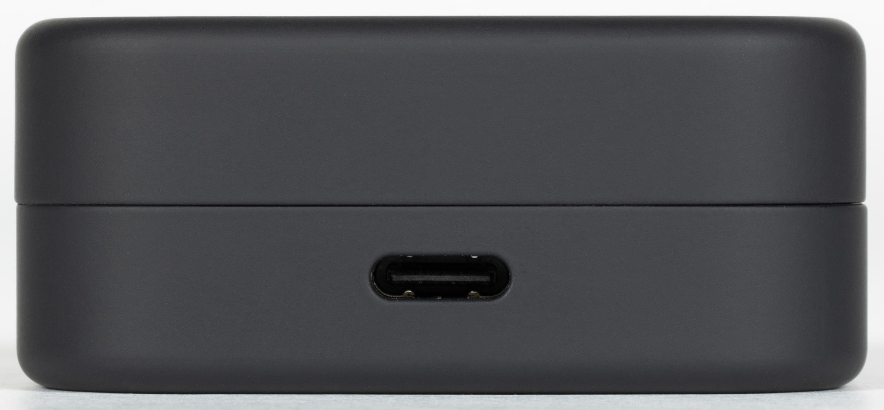 Между слотами для наушников нанесено их название, подзарядка организована необычным образом: подпружиненные контакты вынесены на отдельную площадку, а потому в случае необходимости их будет легко очистить.