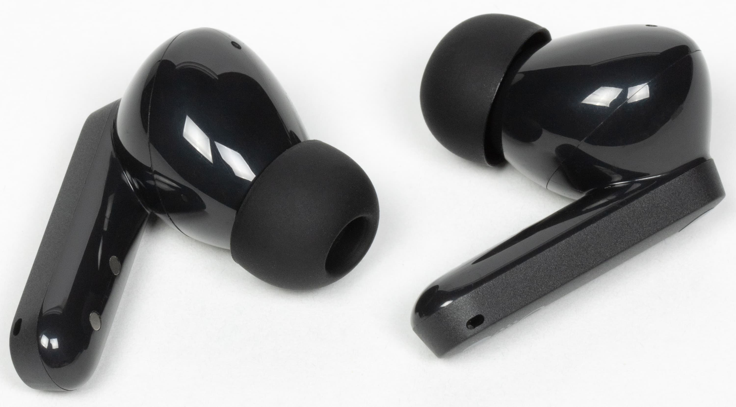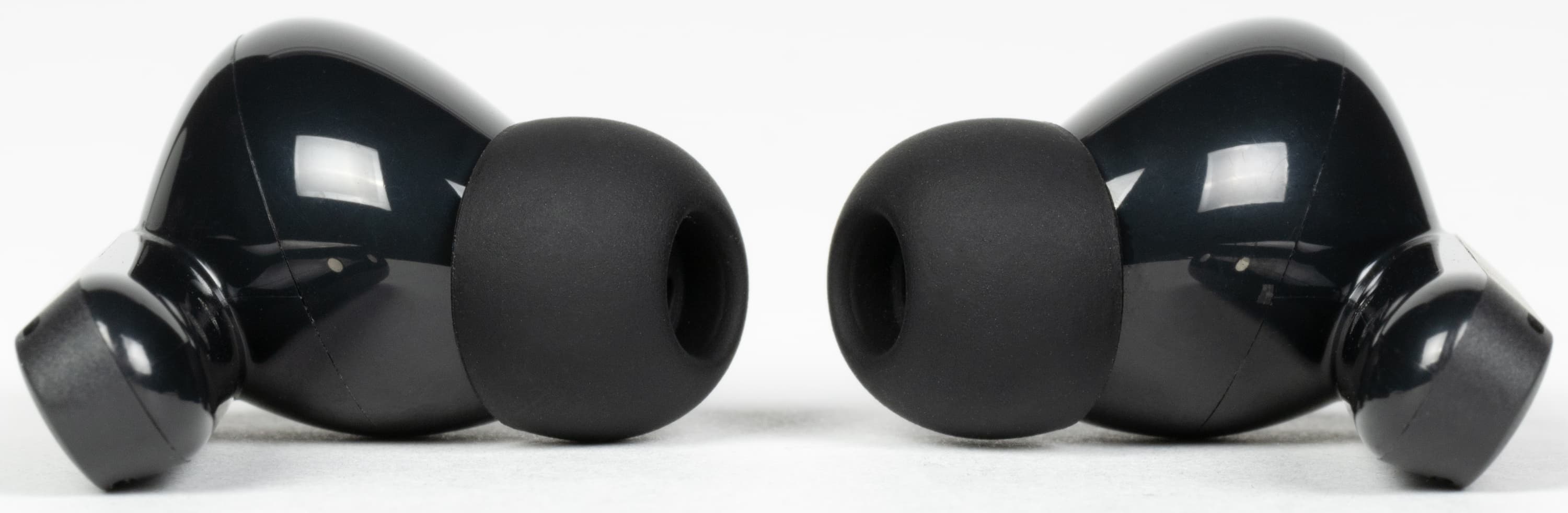 Палочки наушников выполнены из матового пластика, устойчивого к появлению пятен от прикосновений. А внутренняя часть — из глянцевого пластика, обеспечивающего лучшее «сцепление» с кожей ушной раковины. Практически идеальное сочетание.