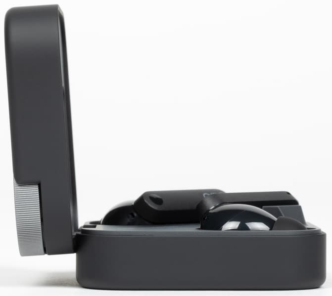 Колесико на кейсе также настраивается из приложения, при этом оно оказалось на удивление многофункциональным: позволяет регулировать громкость, принимать и завершать звонки, а также включать и выключать шумоподавление. И даже принудительно перемещать фокус между устройствами, подключенными в режиме мультипойнта. Делается это всё как с помощью вращения, так и нажатиями — поддерживаются однократное, двойное, тройное и длительное. Многие гарнитуры позволяют управлять громкостью свайпами по сенсорной зоне, многократными нажатиями и так далее. В целом, это довольно удобно, но не всегда и не всем — в частности, некоторых раздражает необходимость трогать наушники, которые практически неизбежно меняют свое положение, после чего приходится их поправлять. Поворотное колесико в данном случае — хорошая альтернатива.