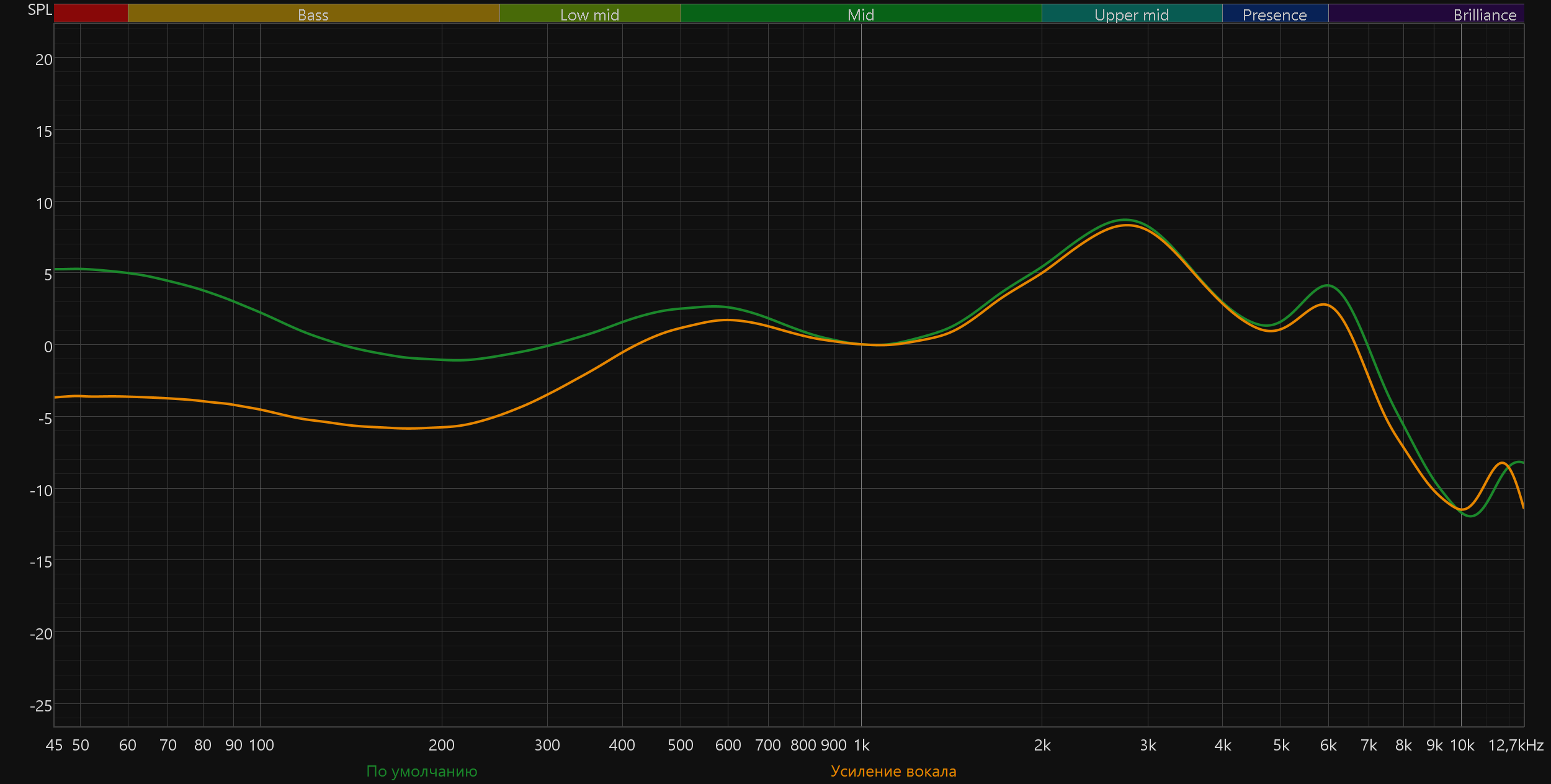 Функция Ultra Bass работает замечательно, равномерно увеличивая акцент на басе. При этом даже на максимальной 5-й ступени НЧ-диапазон не сильно теряет в качестве. Характерное для форсированного баса гудение не появляется, более того — середина остается более-менее читаемой.