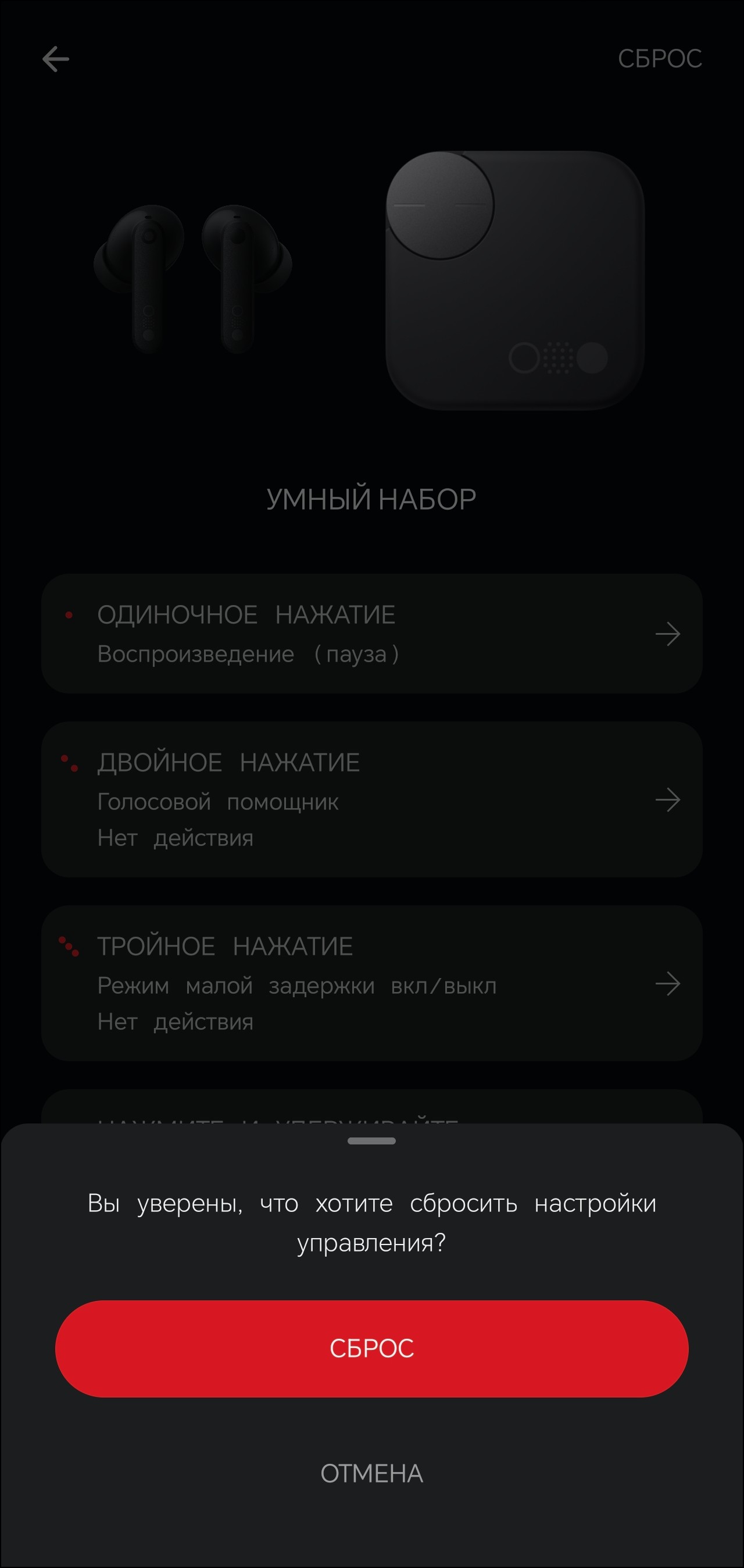 Часть функций поворотного регулятора можно настроить через приложение — в частности, выбрать режимы шумоподавления для «пролистывания», привязать действия к различным типам нажатия и так далее. Как только случайные срабатывания окончательно надоедят, можно отключить регулирование громкости поворотом колесика. Вариантов настроек много, запутаться в изменениях очень просто, если это произошло — одной кнопкой возвращаем всё как было.